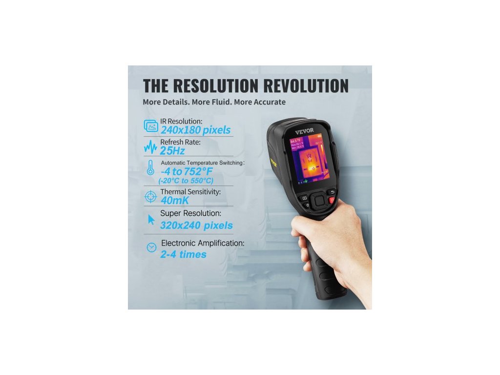 Termokamera s infračerveným zobrazovačem, IR rozlišení 240x180, 7,1cm LCD displejUžijte si skvělý obraz