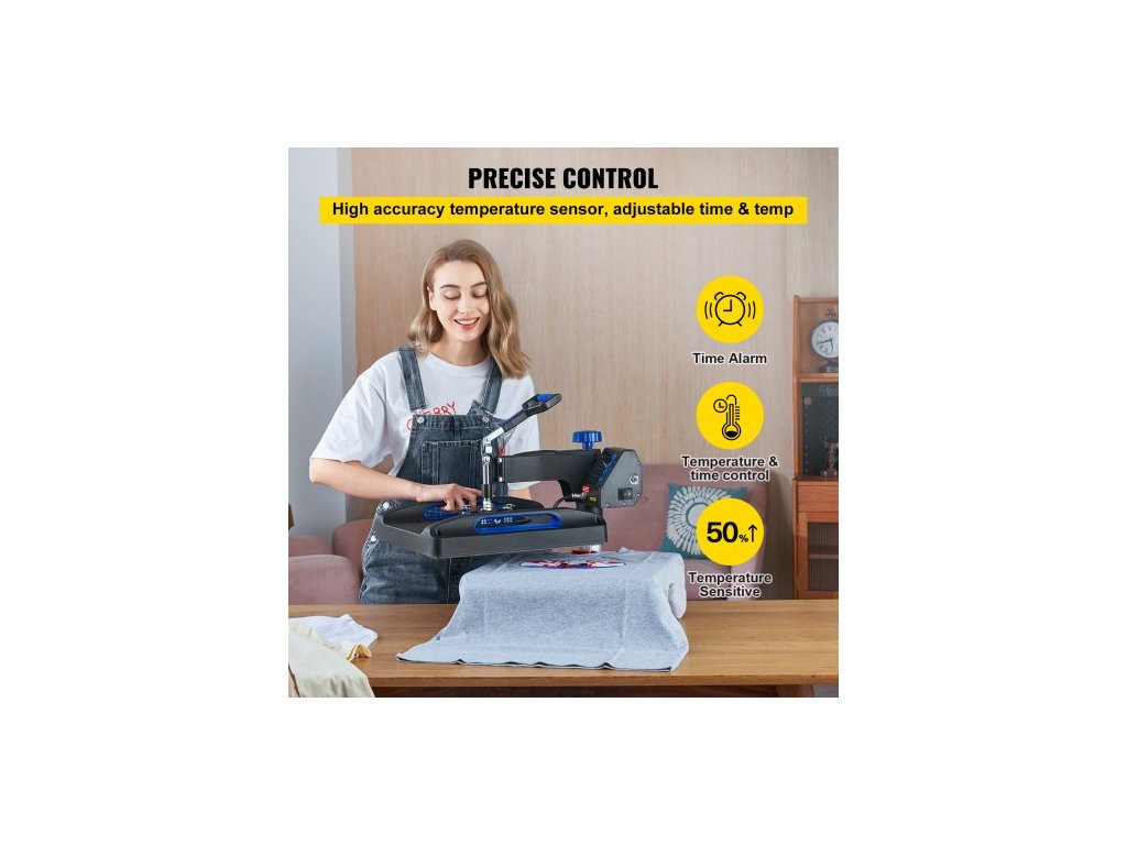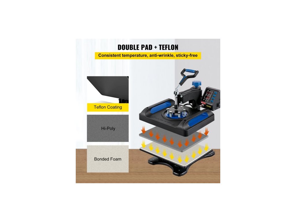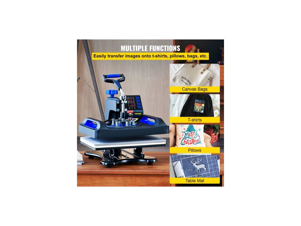 Tepelný lis , 30,48 x 38,1 cm, rychlý ohřev, 360° otočný digitální sublimační tisk na trička, plátěná taška, polštář, banner, modrýSnadno čitelná digitální tabule