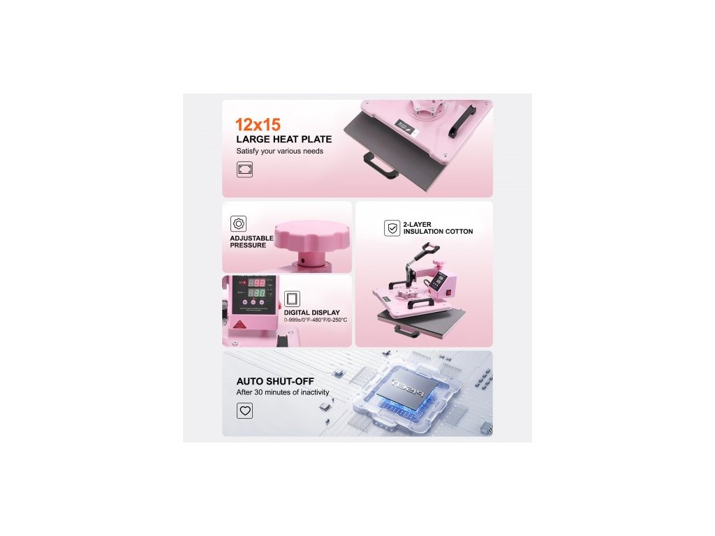 Rozměry topné desky: 12 x 15 palců / 300 x 380 mm,Hlavní materiály: Plech, hliníková slitina,Čistá hmotnost (včetně veškerého příslušenství): 37,5 lbs / 17,0 kg,Časový rozsah: 0-999 s,Barva: Růžová,Číslo modelu položky: SJY-H12151M,Teplotní rozsah: 32-480℉/0-250℃,Příkon: 1150 W (USA) / 1050 W (AU/EU)