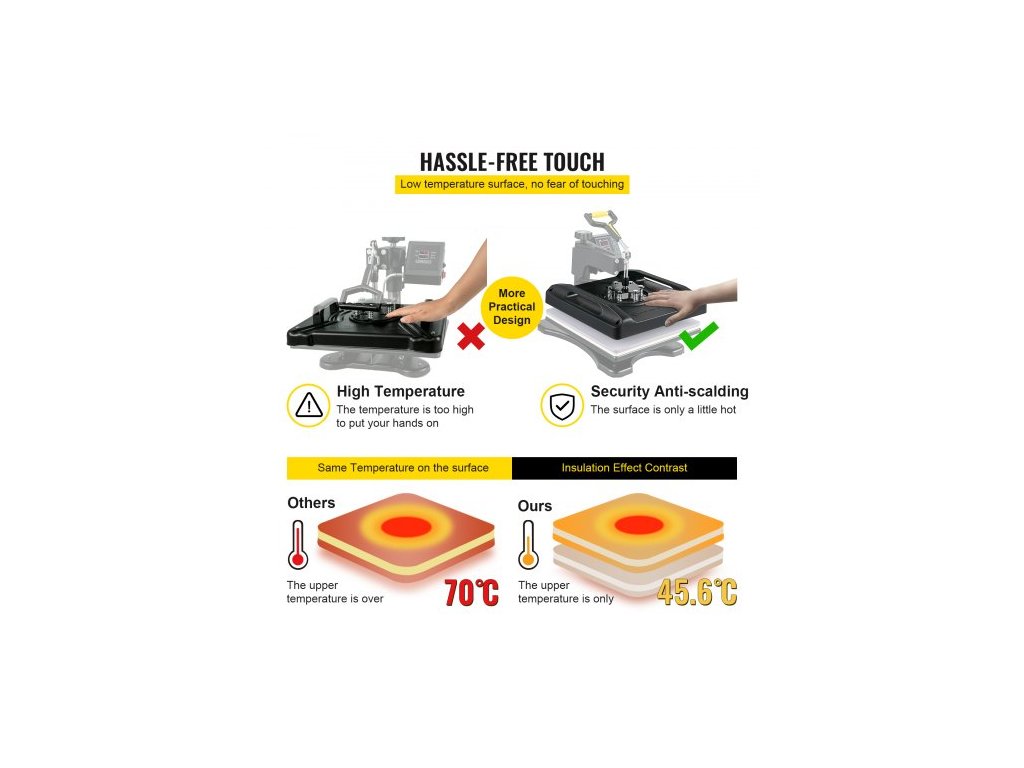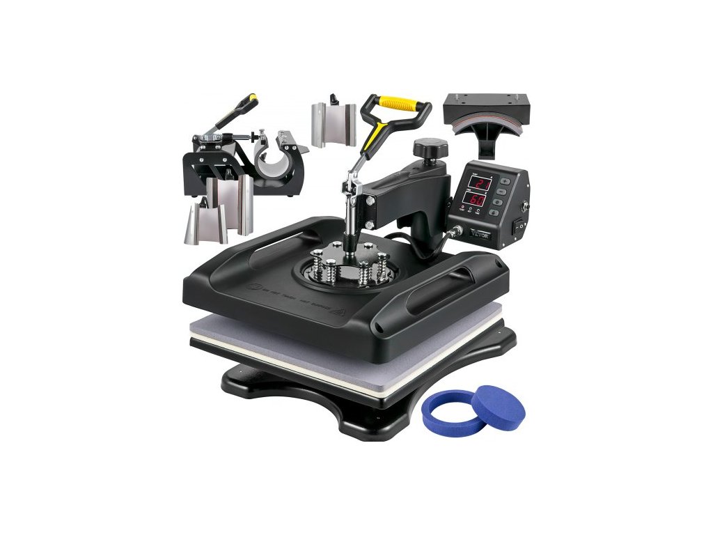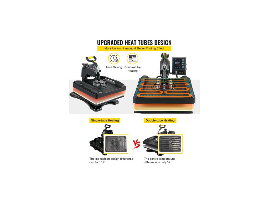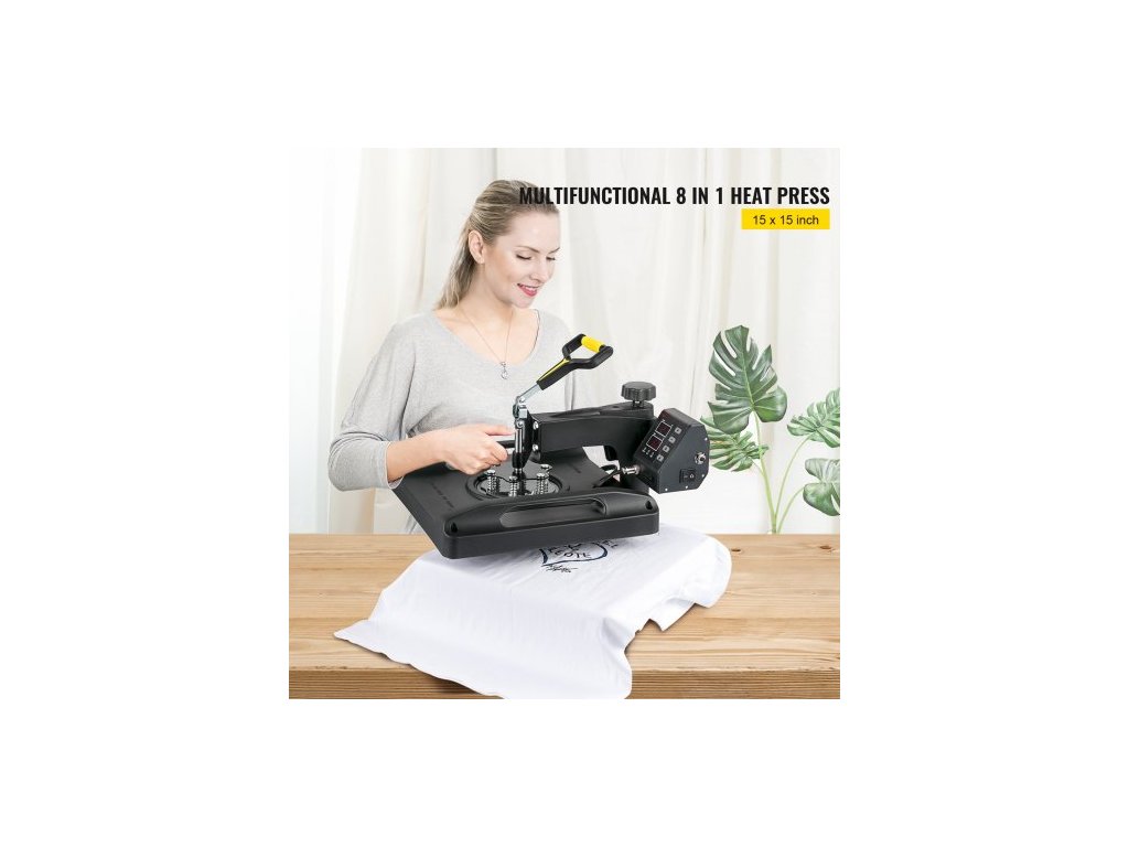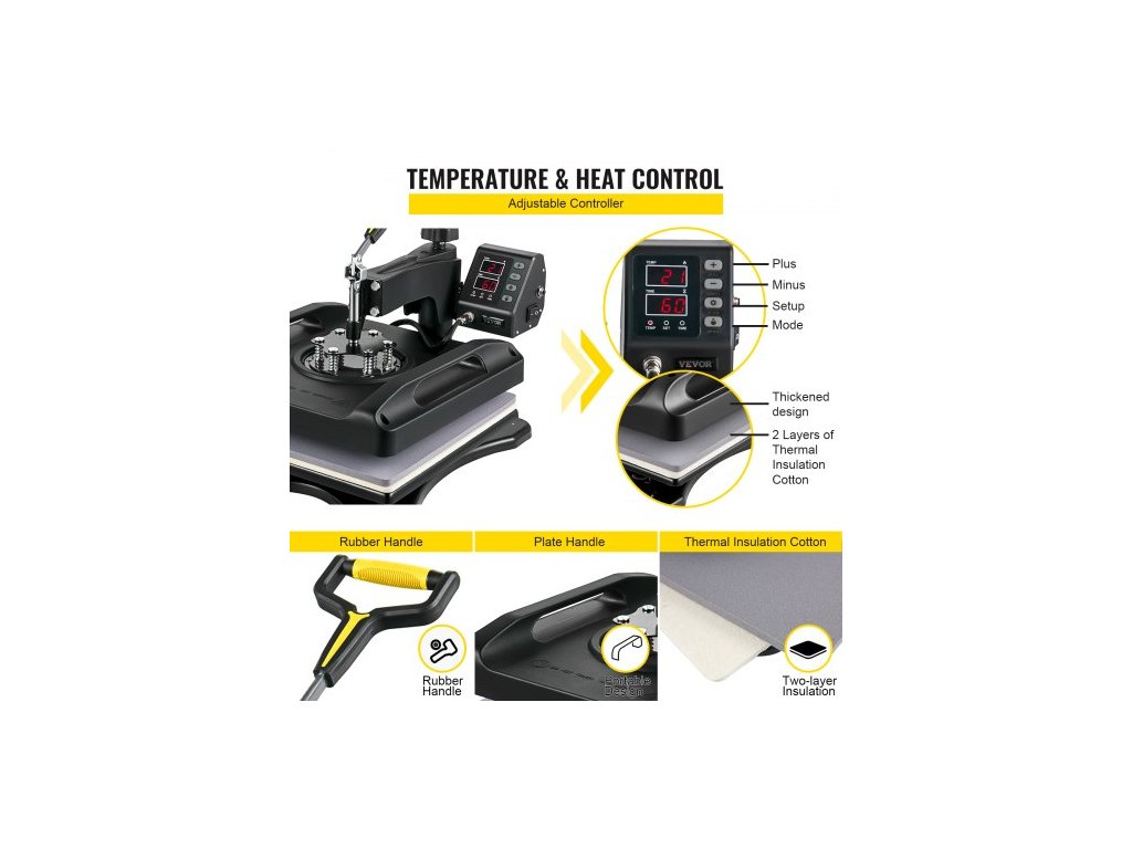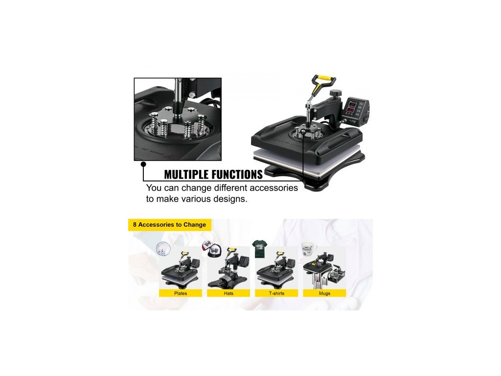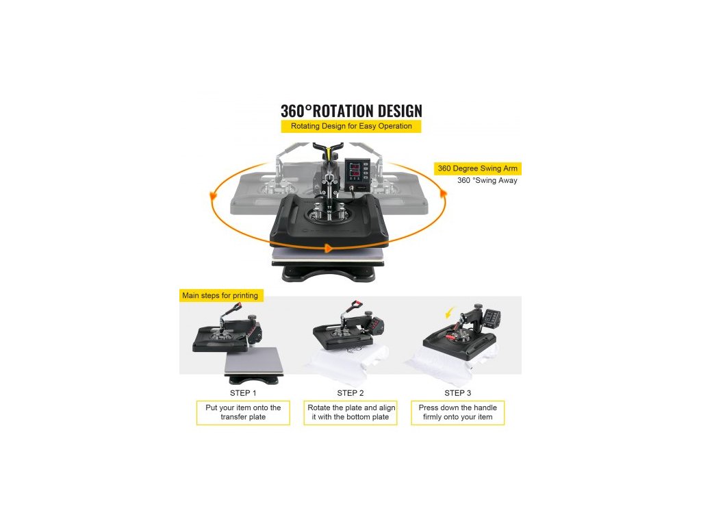 Termolis 38,1x38,1 cm 8 v 1, sublimační lis 1000 W, rotace 360°, výklopný, 8 v 1, potisk triček, dvoutrubkové topení pro výrobu triček, čepic a hrnků (černý)