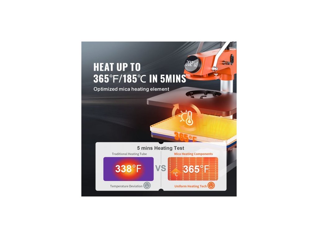 Termolis - 8v1 sublimační termolis pro DIY trička/čepice/hrnky/projekty s přenosem tepla, multifunkční výklopný termolis 12x15 s rotací 360°, testován dle norem ULRychlé zahřívání