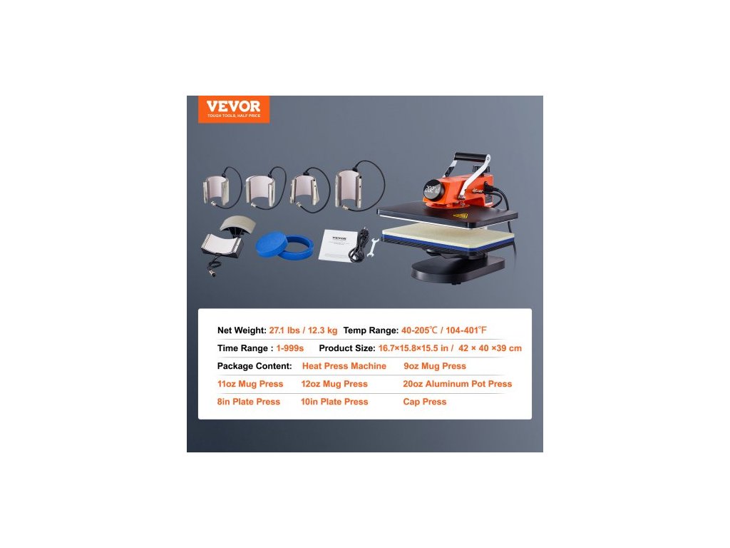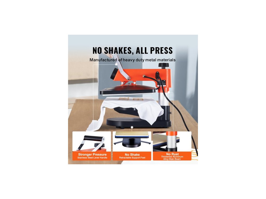 Termolis - 8v1 sublimační termolis pro DIY trička/čepice/hrnky/projekty s přenosem tepla, multifunkční výklopný termolis 12x15 s rotací 360°, testováno dle norem UL
