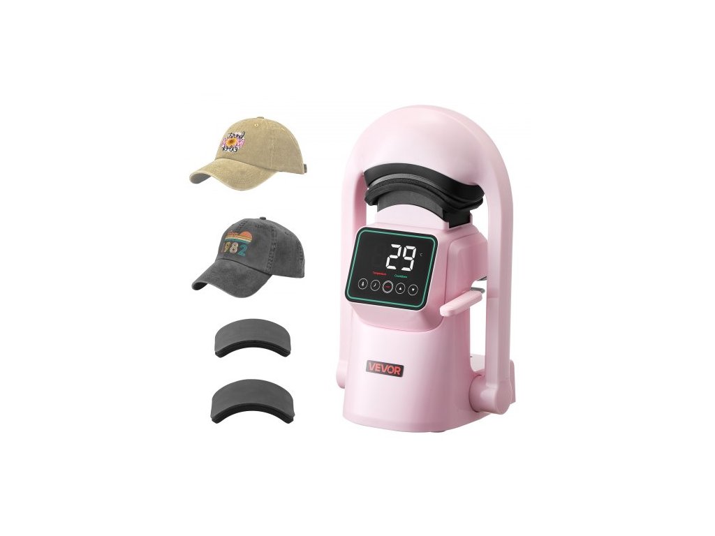 Automatický tepelný lis na čepice , se 2 vyměnitelnými deskami, automatické otevírání a uvolňování, dotyková obrazovka pro přesné ovládání času a teploty, potisk teplonosu na čepice a klobouky, růžováVšestranné řešení automatického tepelného lisu
