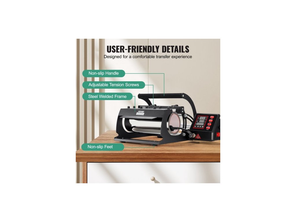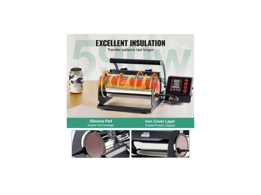 Termolis , lis na hrnky o objemu 11-30 oz, rychlé a rovnoměrné zahřívání, lis na hrnky se sublimačním papírem, páskou a rukavicemi, nastavení teploty a času, pro sublimační hrnky, kelímky, hrnky, černáFlexibilní kreativita
