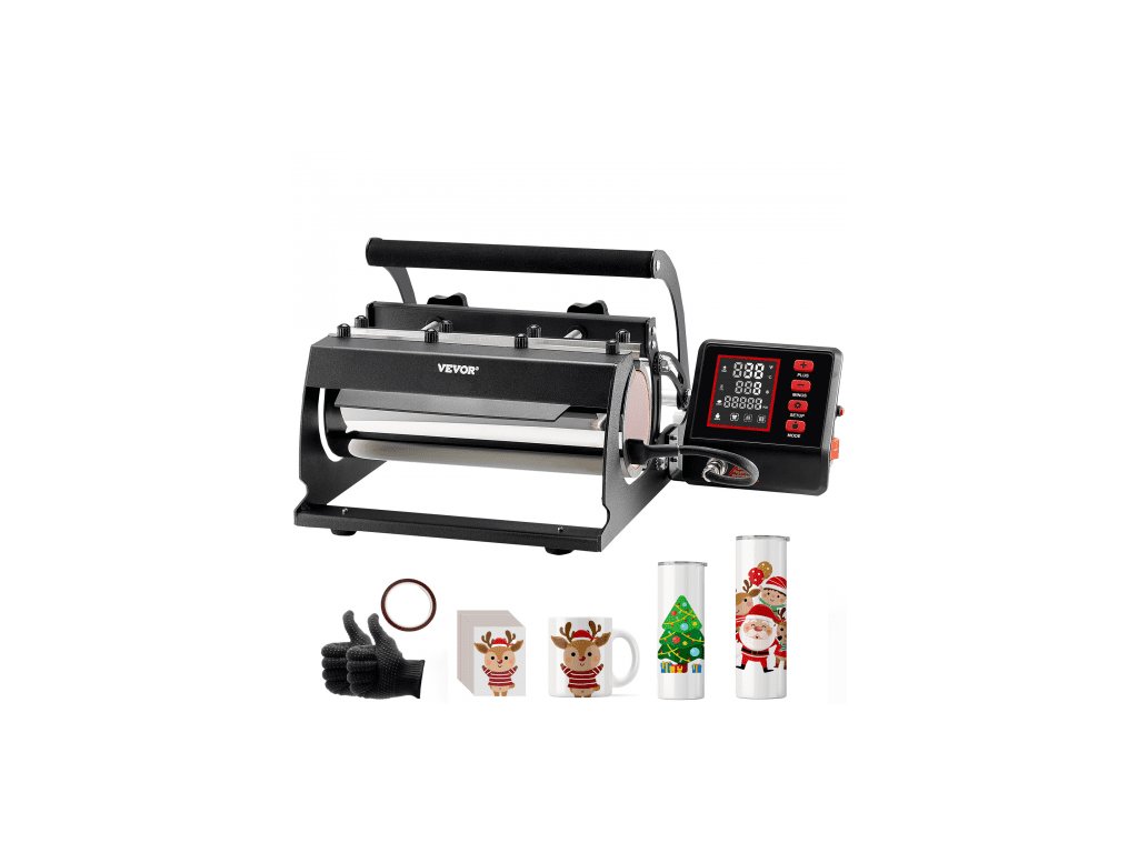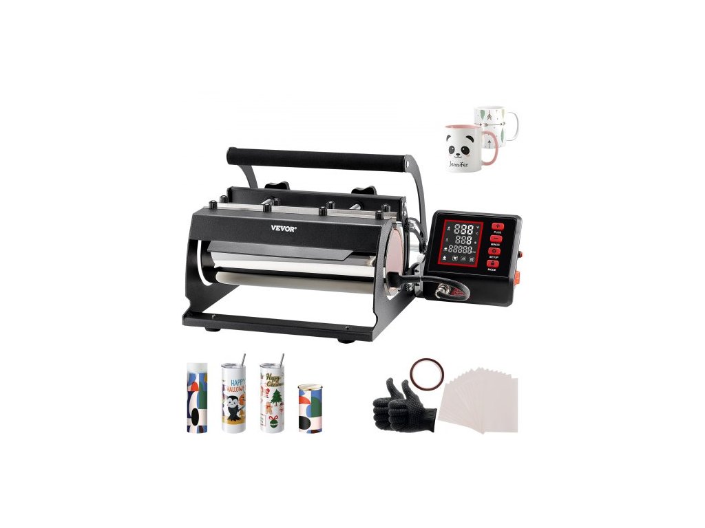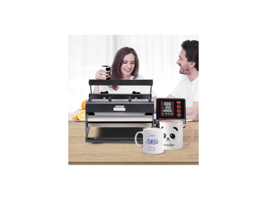 Termolis , lis na hrnky o objemu 11-30 oz, rychlé a rovnoměrné zahřívání, lis na hrnky se sublimačním papírem, páskou a rukavicemi, nastavení teploty a času, pro sublimační hrnky, kelímky, hrnky, černá
