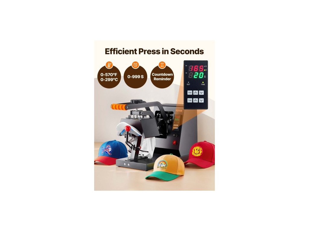 Termolis na čepice , 4v1 termolis na čepice, sublimační transferový tisk 15,24 x 7,6 cm, digitální LCD časovač, regulace teploty se 4 zakřivenými topnými tělesy (15,24 x 7,6/17x6,86/17x6,86/20,57x8,89 cm)Čtyři topné podložky