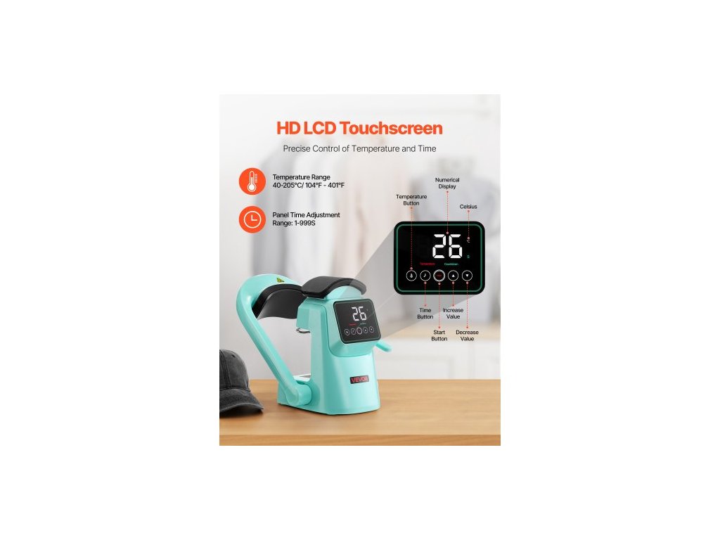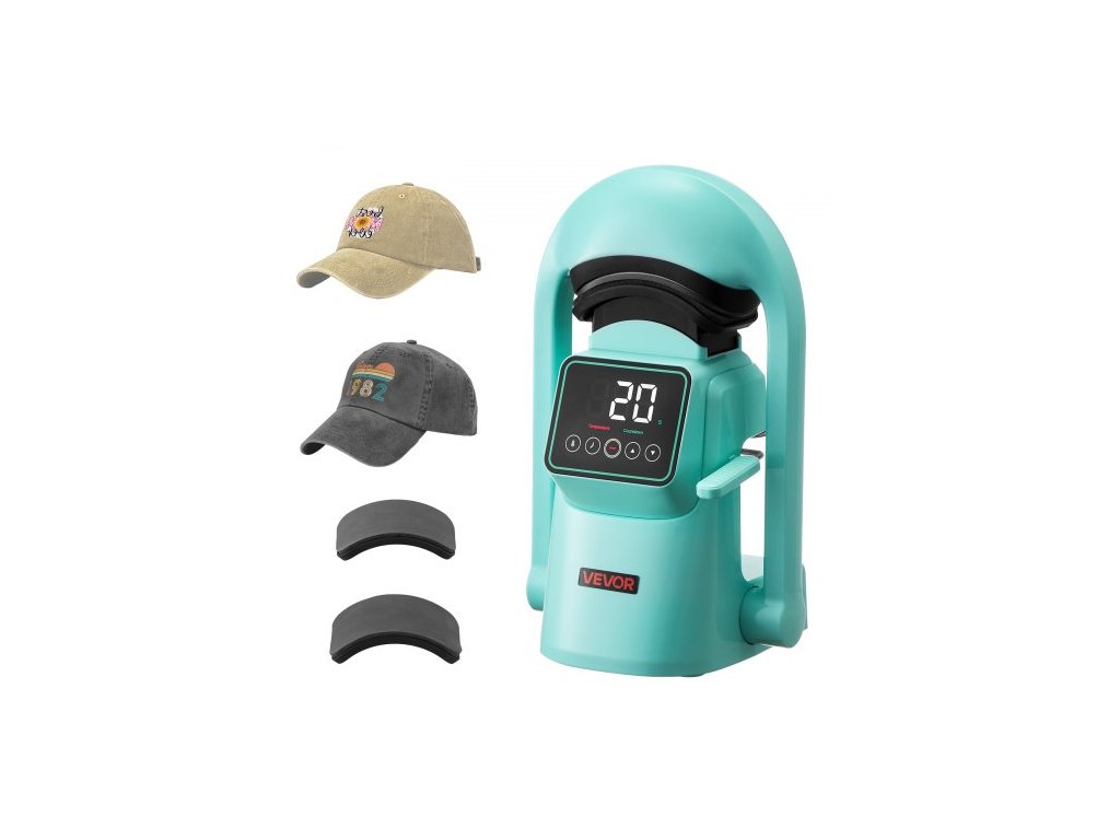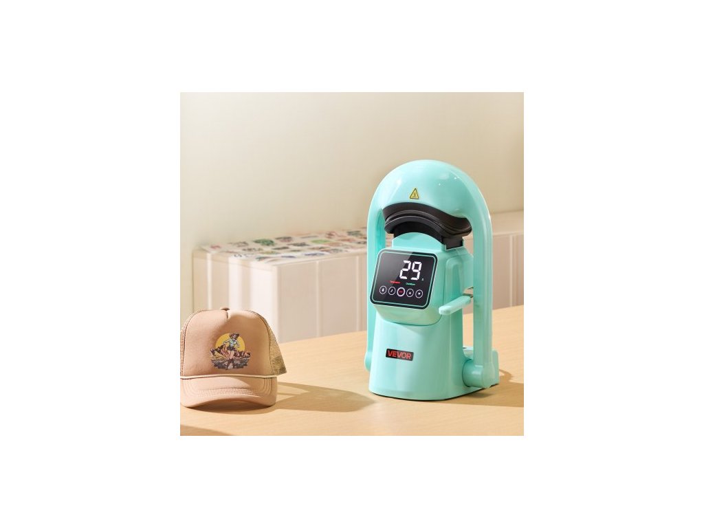 Automatický tepelný lis na čepice , se 2 vyměnitelnými deskami, automatické otevírání a uvolňování, dotyková obrazovka pro přesné ovládání času a teploty, potisk teplonosem na čepice a klobouky, zelenáVšestranné řešení automatického tepelného lisu
