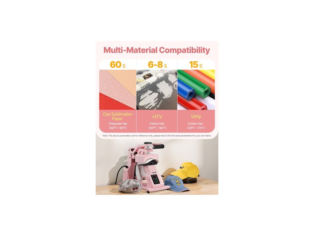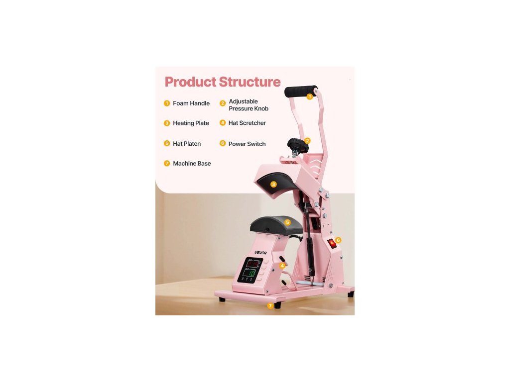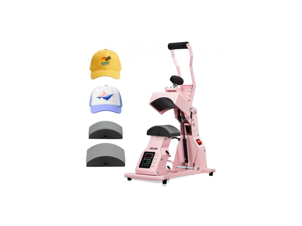 Termolis na klobouky , se 2 vyměnitelnými deskami, přesné ovládání teploty a času, lis na klobouky pro nažehlovací a sublimační projekty HTV, pro čepice, čelenky, manžety, roušky, růžováProtiskluzové přísavky