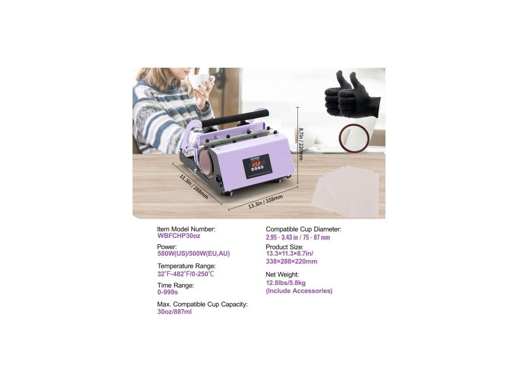 Termolis na hrnky, sublimační hrnky, fialové, 311,8–850,5 g