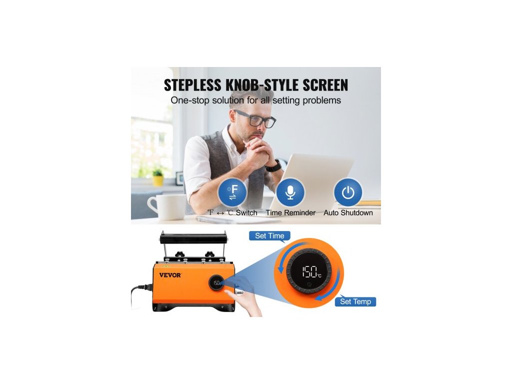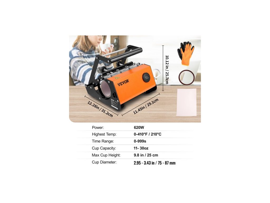 Průměr lisu na hrnky: 7,4 cm, Časový rozsah: 0–999 s, Barva: Černá, Velikost produktu: 29,1 × 31,2 × 25,7 cm, Použitelný průměr hrnku: 7,3–8,7 cm Materiál hrnku: Keramika / nerezová ocel / hliníková slitina, Napětí: 220 V 60 Hz, Materiál lisu: silikagel a železo, Model: F270, Teplotní rozsah: 40 °C-210 °C, Výška lisu na hrnky: 27 cm, Použitelný objem hrnku: 315-30 oz, Čistá hmotnost: 7 kg, Příkon: 620 W, Použitelná výška hrnku: Max. 25 cm