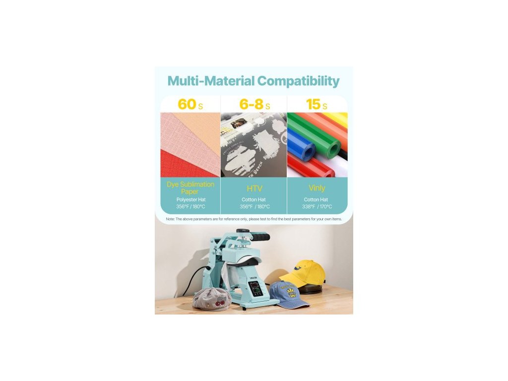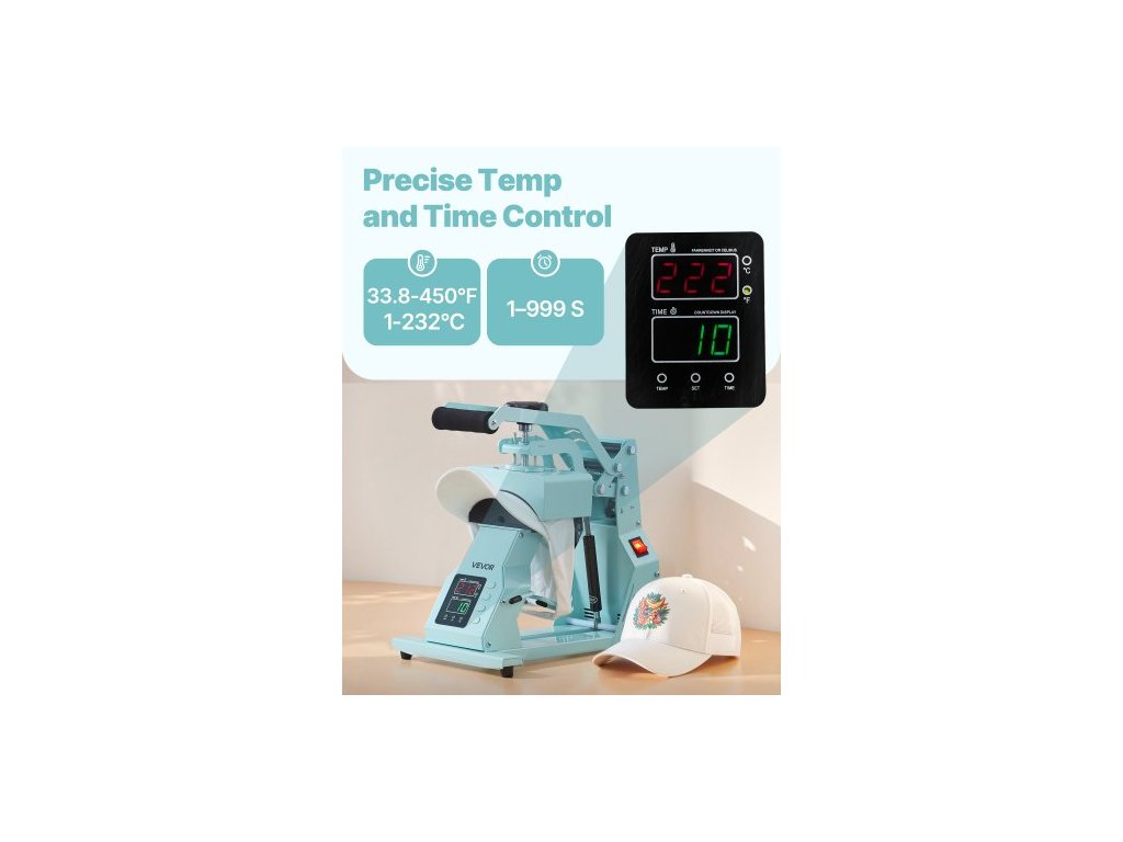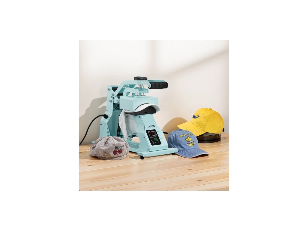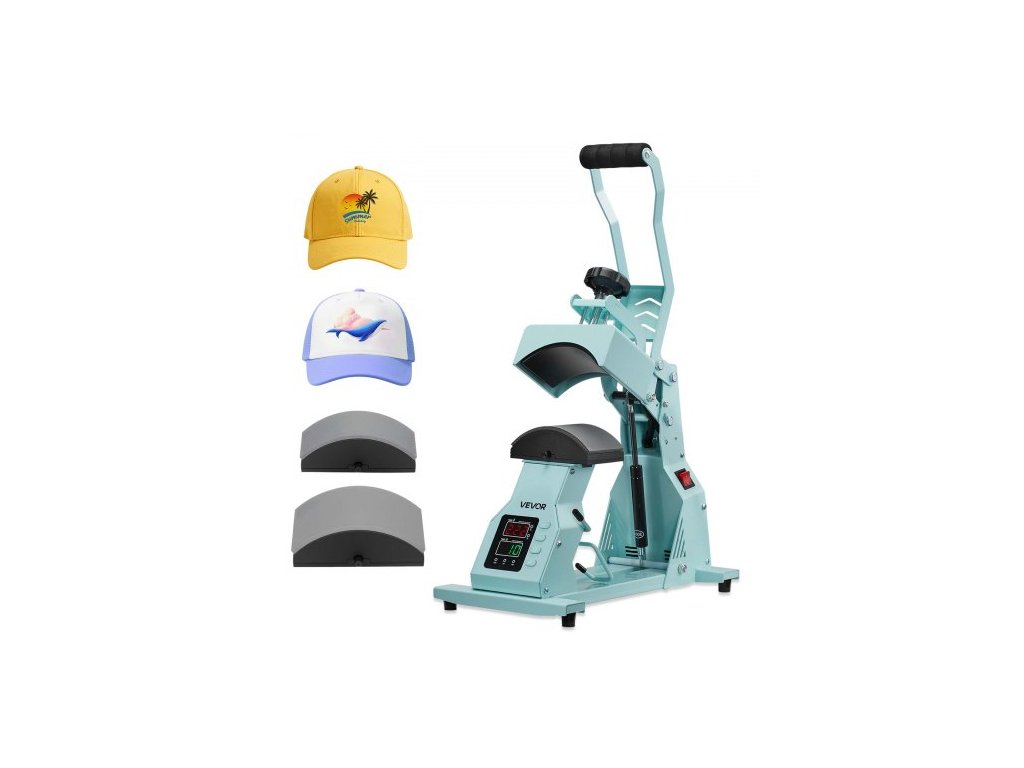 Termolis na klobouky , se 2 vyměnitelnými deskami, přesné ovládání teploty a času, lis na klobouky pro nažehlovací a sublimační projekty HTV, pro čepice, čelenky, manžety, roušky, zelenýProtiskluzové přísavky