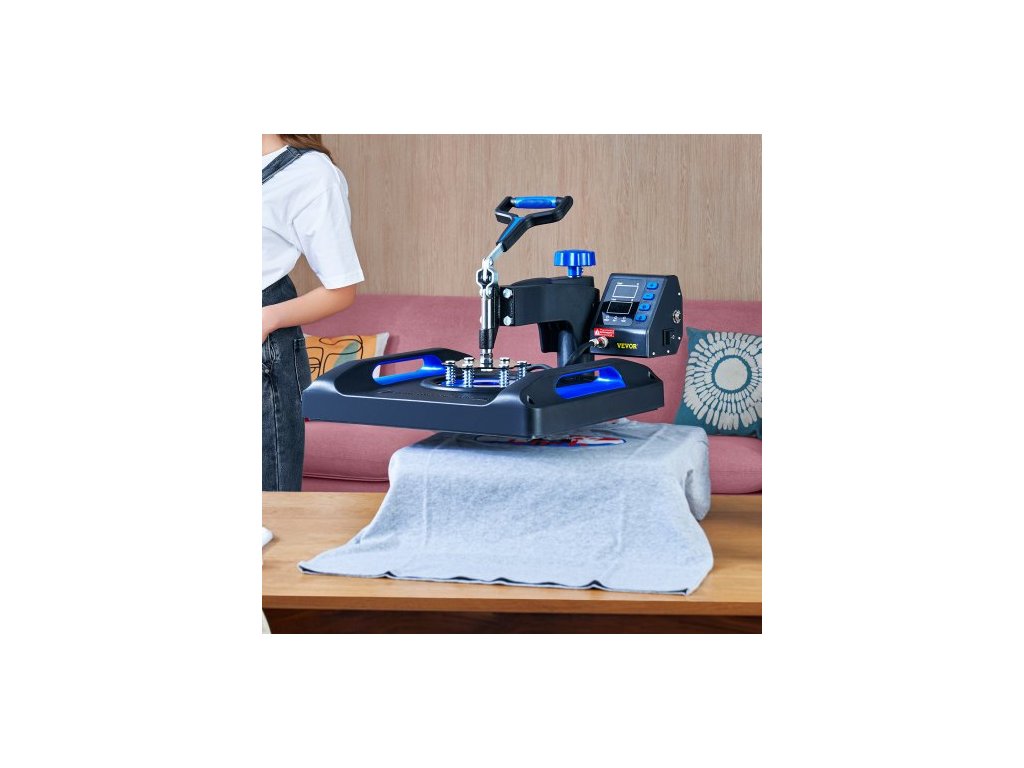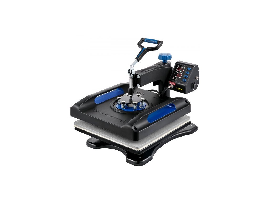 Tepelný lis , rychlý ohřev 15" x 15", 360° otočný digitální sublimační tisk na trička s vinylovým transferem a povrchem odolným proti opaření, plátěná taška, banner, polštář, certifikace ETL, modráSnadno čitelná digitální tabule