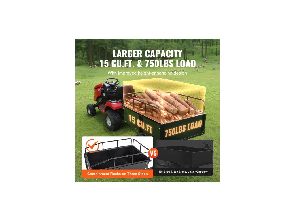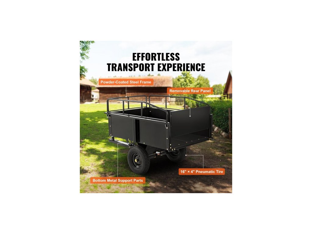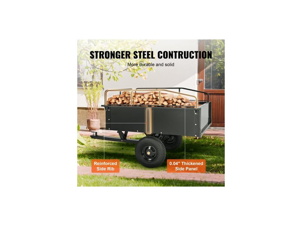 Ocelový sklápěcí vozík pro těžké terénní vozy, 340 kg 0,43 m3, zahradní přívěs s odnímatelnými bočnicemi pro jízdu se sekačkou na trávuUžijte si bezproblémové tažení