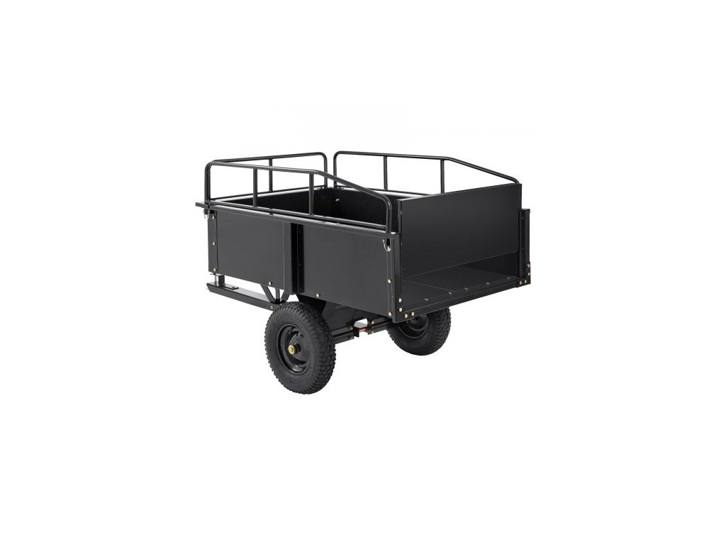 Těžký ocelový sklápěcí vozík pro čtyřkolku, 340 kg 0,43 m3, zahradní přívěs s odnímatelnými bočnicemi pro sekačku na trávu/traktor