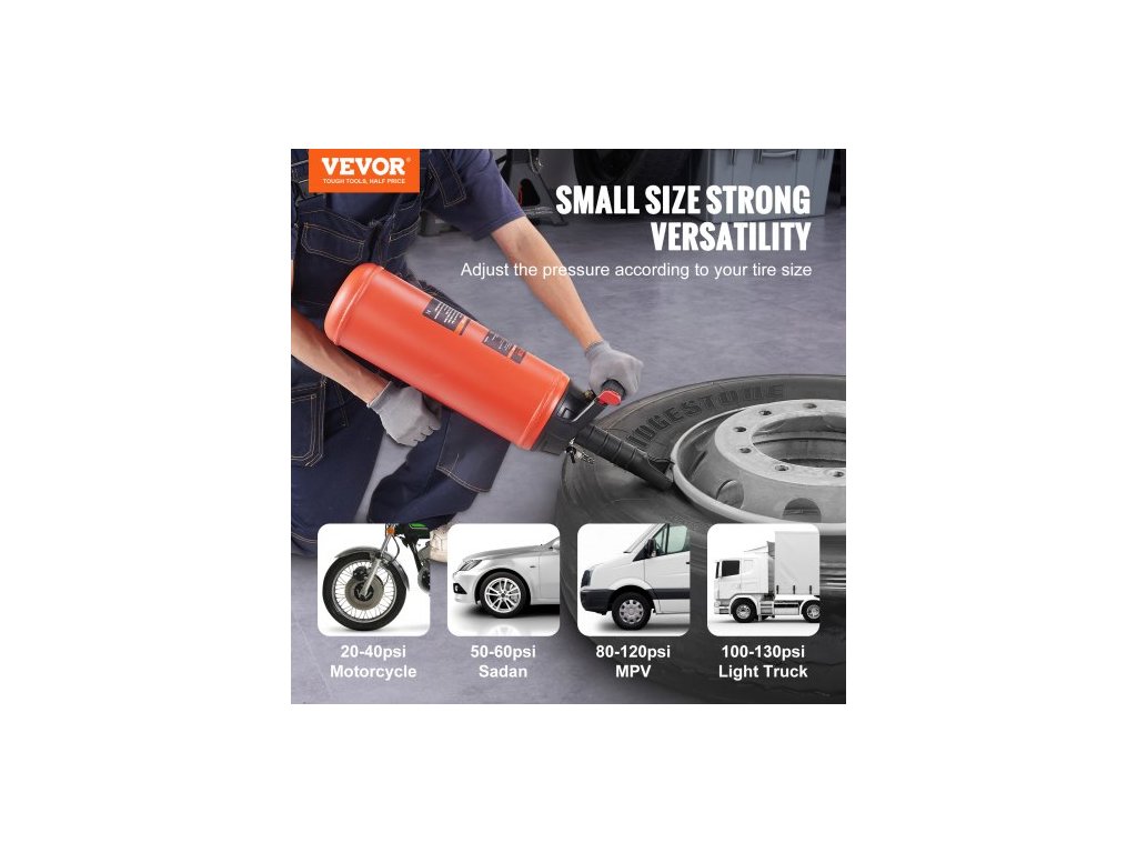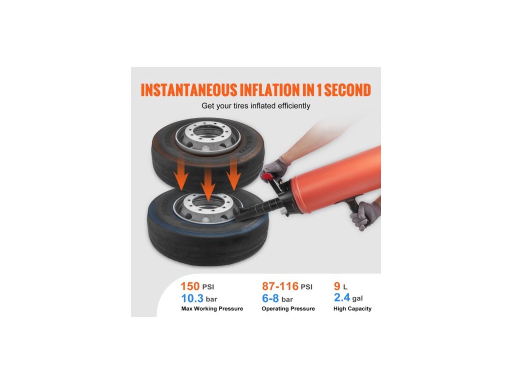 Tire Seater, vzduchová tryska na pneumatiky 2,4 galonu/9 l, ruční tryska 150 PSI, přenosný nástroj na huštění pneumatik, provozní tlak 87-116 PSI pro opravy tahačů, nákladních automobilů, čtyřkolek a automobilůŠiroce použitelný