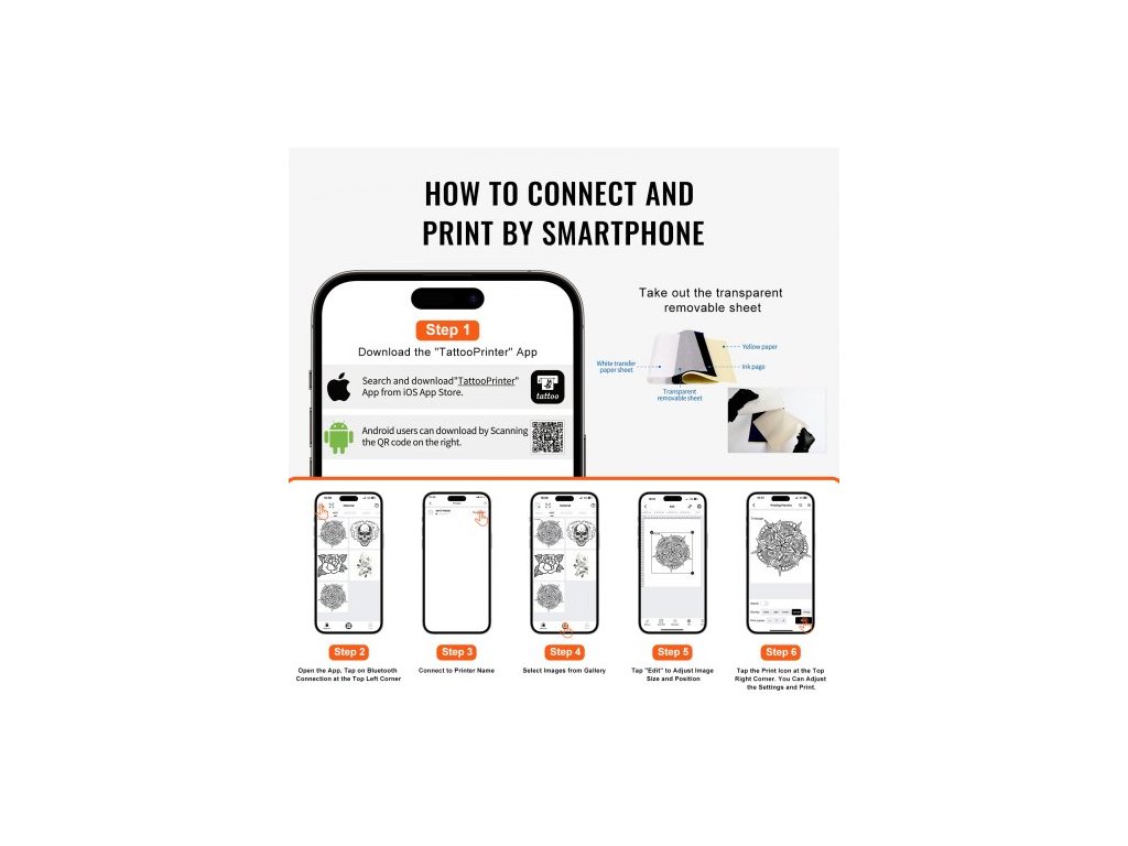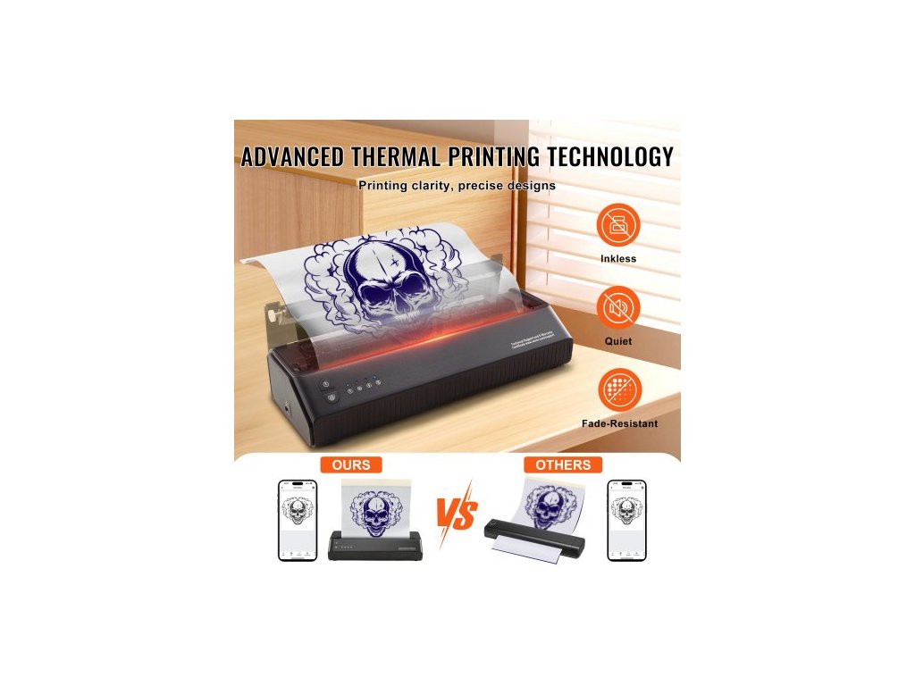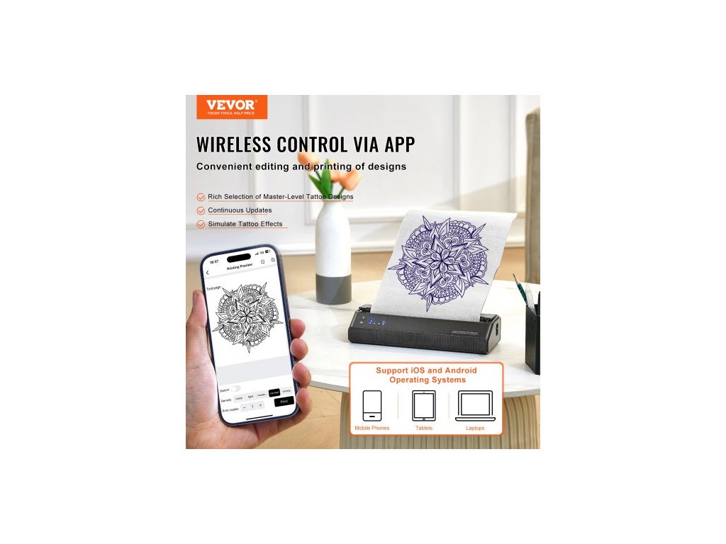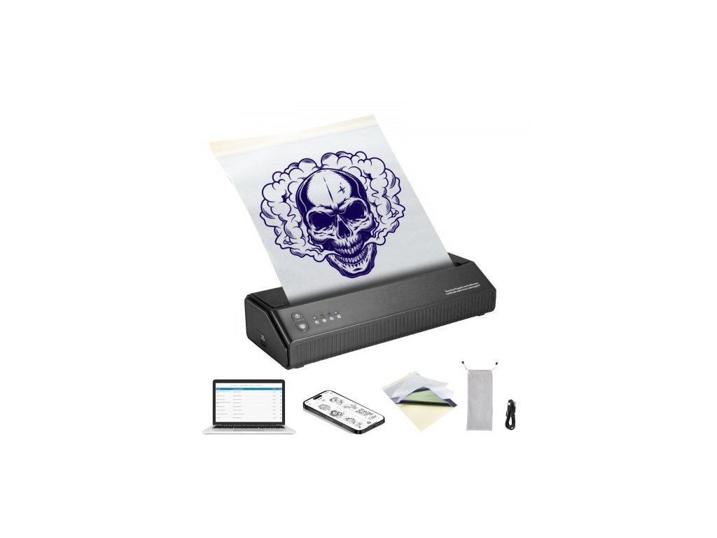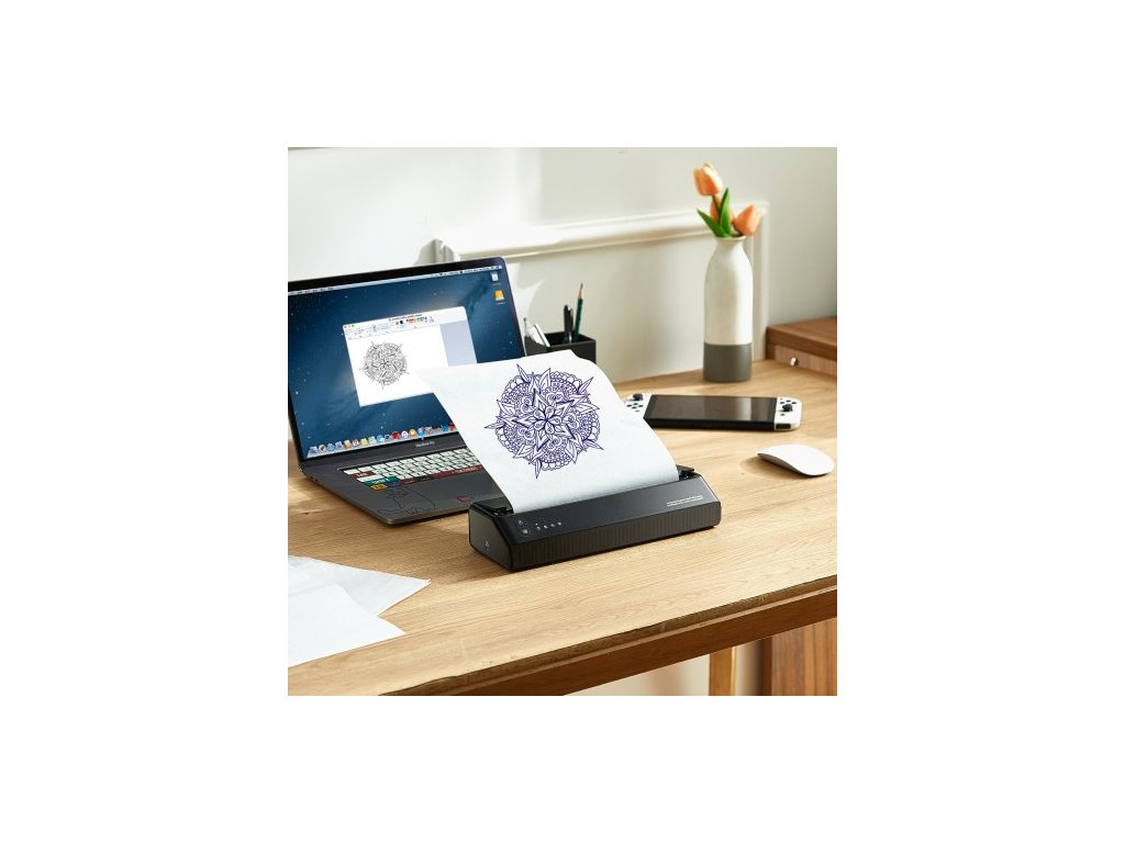 tiskárna šablon pro přenos tetování, bezdrátová Bluetooth tiskárna šablon pro tetování s 10 ks přenosového papíru a látkovým sáčkem, přenosná tiskárna pro Android a iOS telefon, iPad a PC
