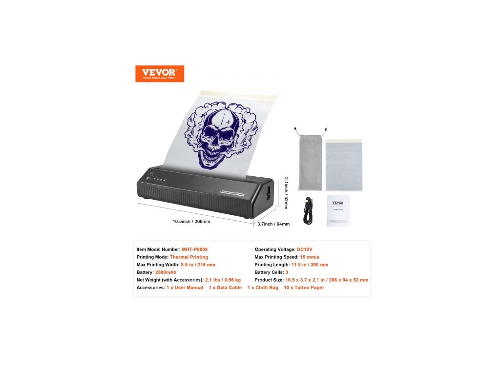 Maximální šířka tisku: 8,5 palce / 216 mm,Režim tisku: Termotisk,Délka tisku: 11,8 palce / 300 mm,Provozní napětí: DC12V,Baterie: 2500mAh,Číslo modelu položky: MHT-P8008,Maximální rychlost tisku: 15 mm/s,Počet bateriových článků: 3,Čistá hmotnost (s příslušenstvím): 2,1 lbs / 0,96 kg,Rozměry produktu: 10,5 x 3,7 x 2,1 palce / 266 x 94 x 52 mm