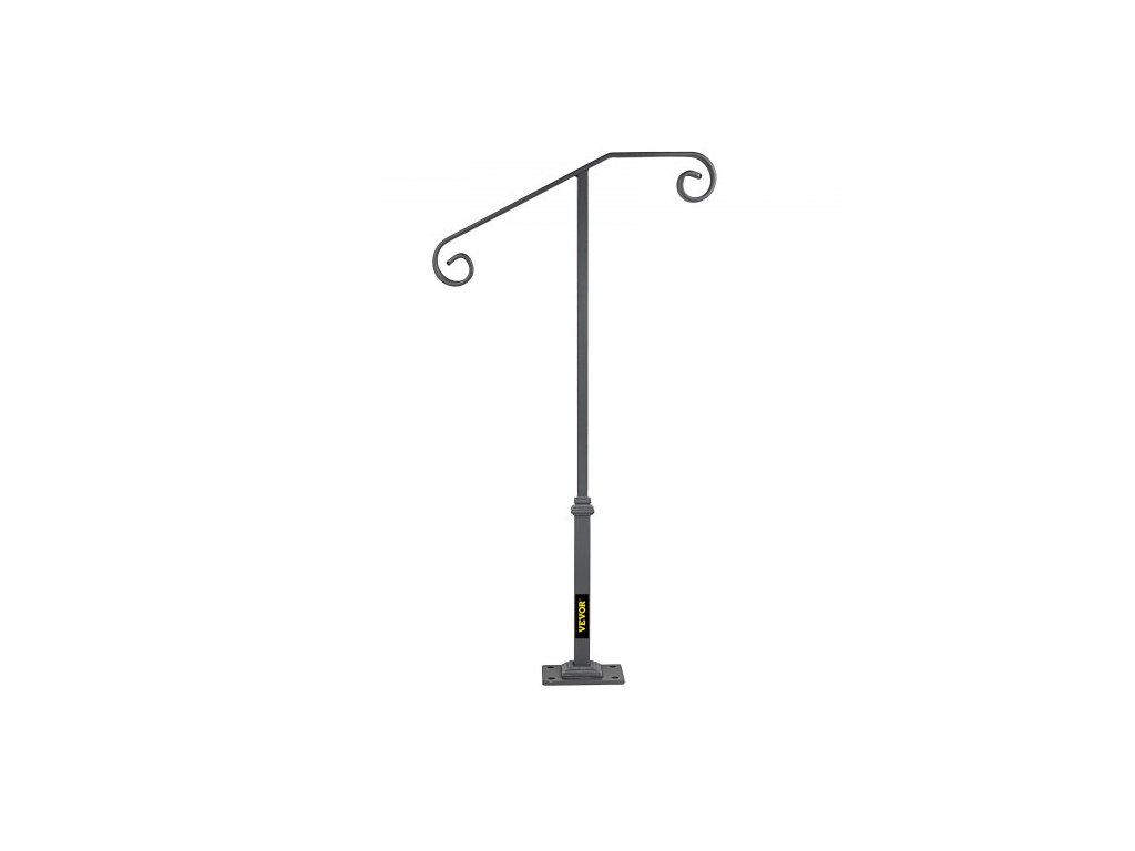 Tmavě šedé madlo s jedním sloupkem pro 1 nebo 2 schody. Madlo z kovaného železa s jedním sloupkem, kovaná železná zábradlí, ozdobné horní madlo na schody s kováním pro venkovní schody. Vhodné pro 1 až 2 schody. Pravé železo. Snadná montáž. Povrch s práškovým nástřikem. Elegantní a módní styl. Všestranné použití. Způsob instalace: Šroubování, tloušťka dvojitého ocelového trubkového sloupku: 25 mm a 30 mm. Rozměry: 52 x 98,6 cm, Barva: Šedá. Materiál: Kované železo.Doplňkové parametry