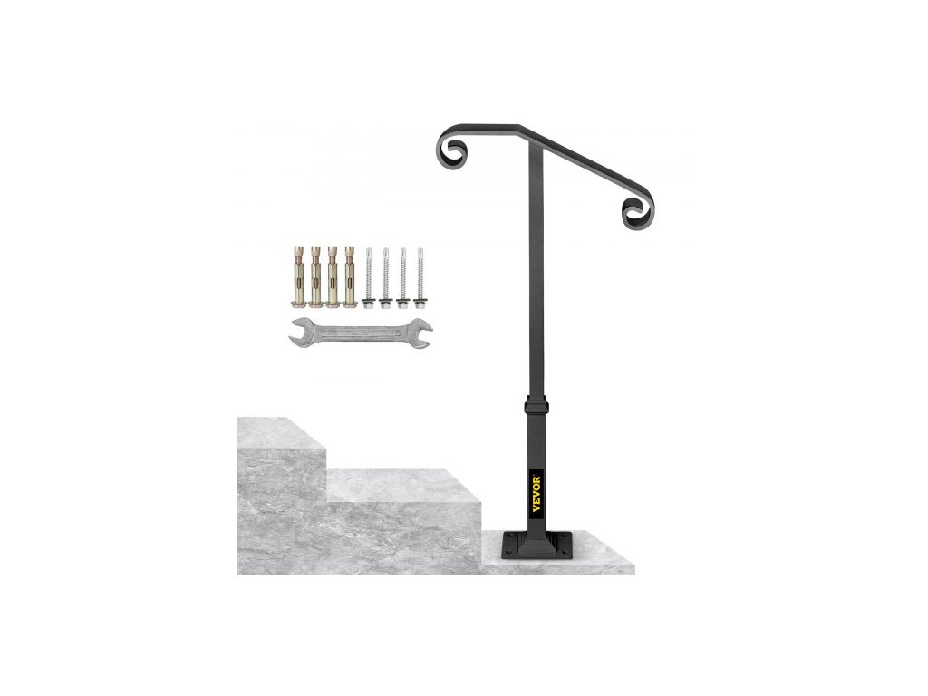 tmavě šedé jednosloupkové madlo pro 1 nebo 2 schody, madlo z kovaného železa, jednosloupkové zábradlí, ozdobné horní madlo na schody s kováním pro venkovní schody.