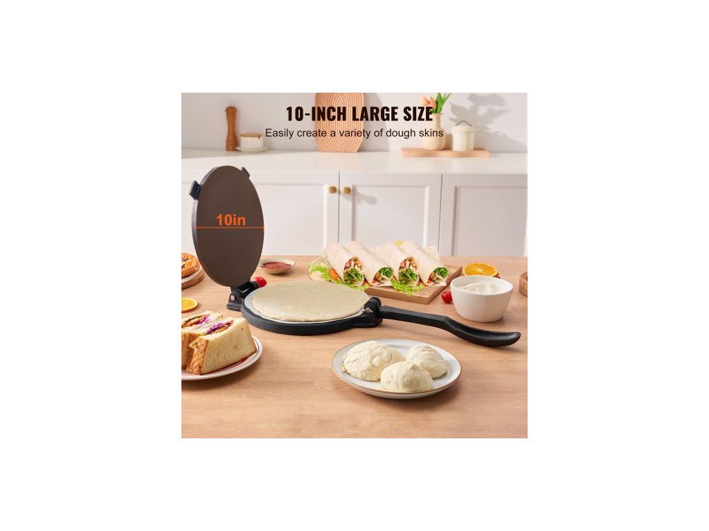 Tortilla Press, 10palcový výrobník tortill a roti, litinový lis na tortilladora s vysokou životností, předkořeněný výrobník pataconery se 100 ks pergamenového papíru, výrobník těsta na moučné tortilly, tawa, stříbrný