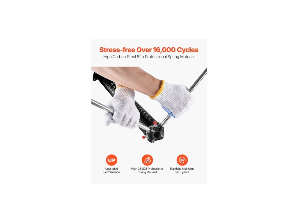Torzní pružiny garážových vrat , pár 0,250 x 2 x 35 palců, 16 000 cyklů, elektroforézní černý povlak pro výměnu, pružiny garážových vrat s protiskluzovými navíjecími tyčemi, rukavice a montážní klíčPřesné inženýrství pro výkon