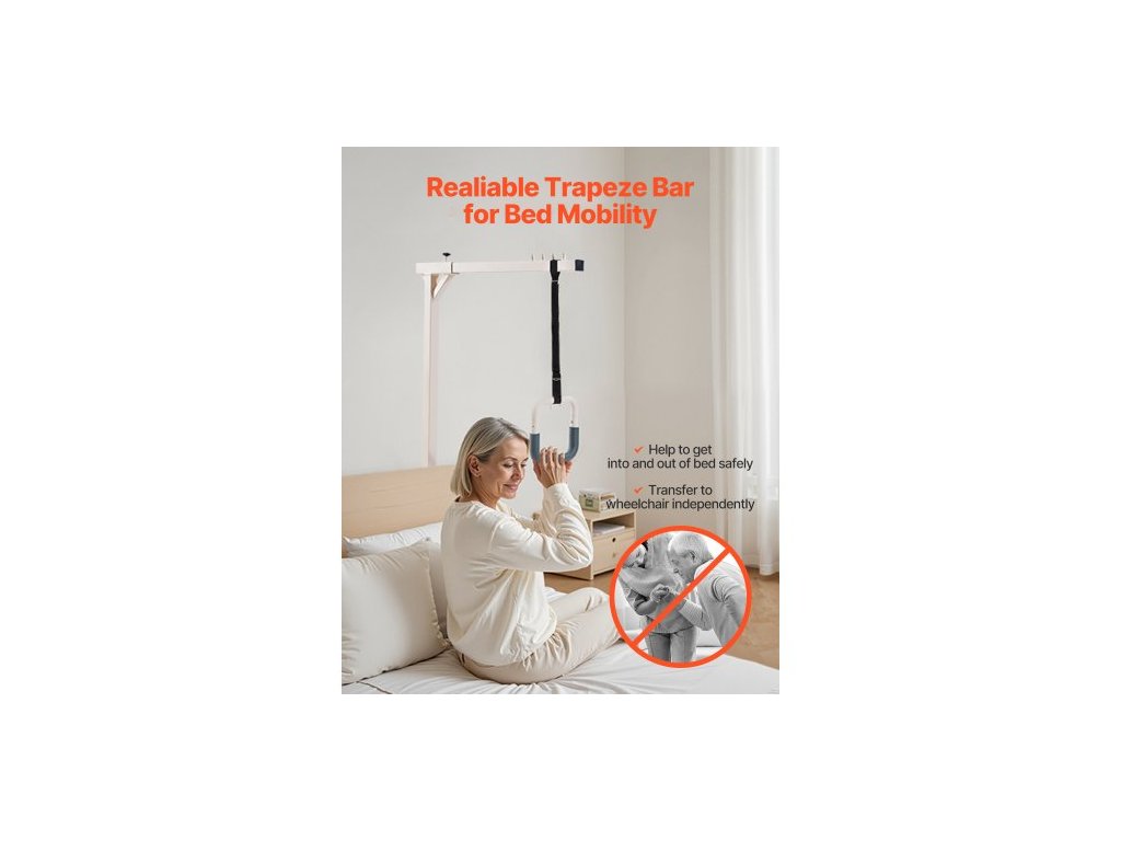 Trapézová hrazda pro mobilitu lůžka, odolná ocelová volně stojící trapézová hrazda s nosností 104 kg, pomocník pro shyby na nemocniční lůžko pro seniory a osoby se zdravotním postižením, ideální pro nemocnice, domovy důchodců a domácí péčiPomáhá vám pohybovat se samostatněji