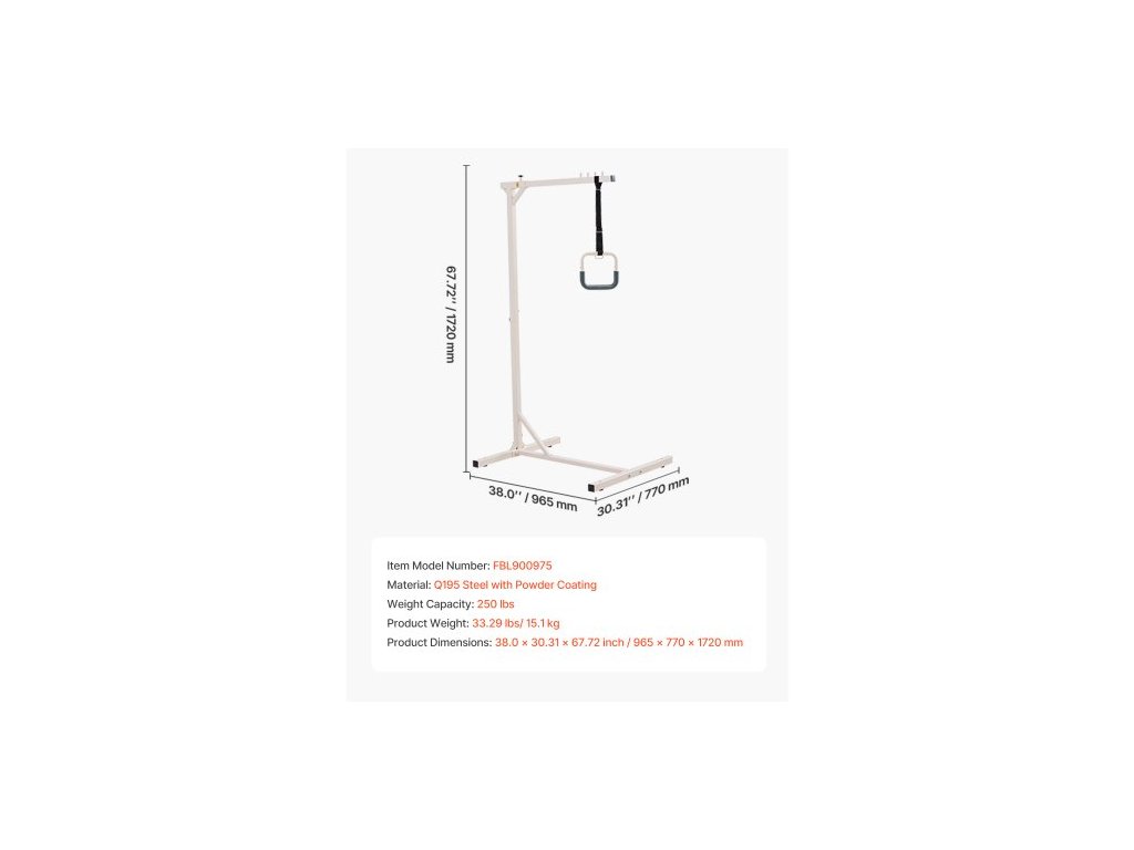 Trapézová hrazda pro mobilitu na lůžku, odolná ocelová volně stojící trapézová hrazda s nosností 250 liber, pomocník pro shyby na nemocničním lůžku pro seniory a osoby se zdravotním postižením, ideální pro nemocnice, pečovatelské domy, domácí péči