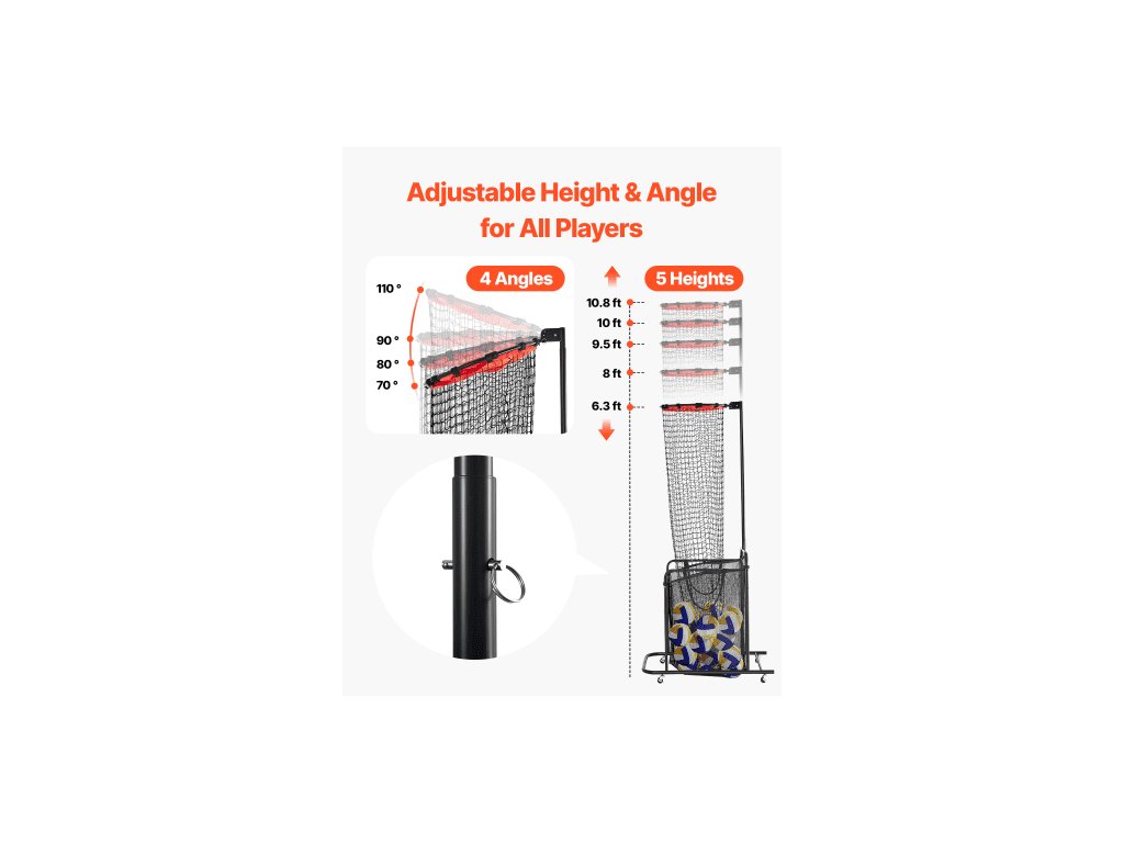 Tréninkové vybavení pro volejbalové nahrávače , úhlově a výškově nastavitelný volejbalový trenažér, přenosná cvičná síť s vozíkem, kolečka, přepravní taška, terčová síť pro vnitřní a venkovní použití na podávání a pálkování