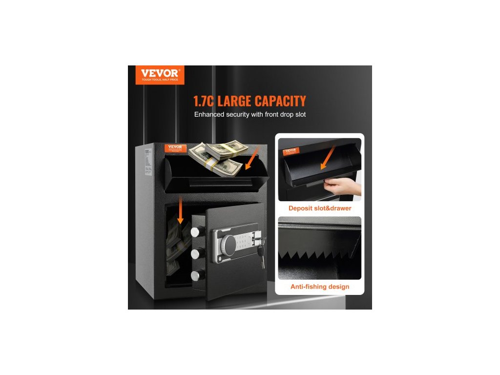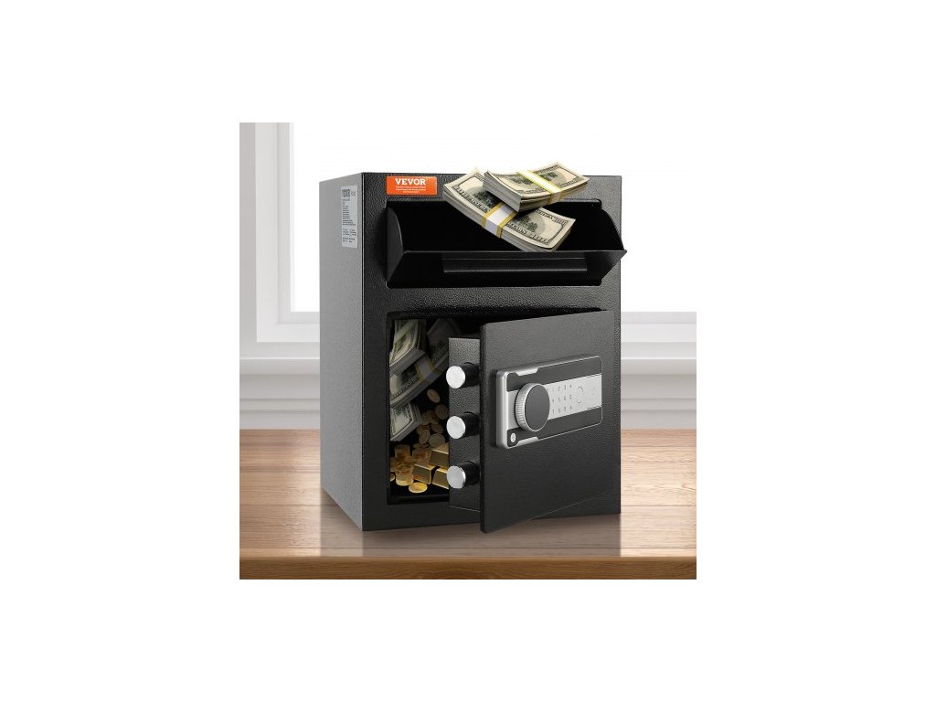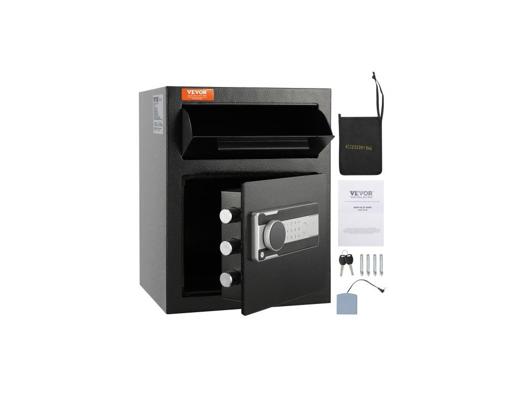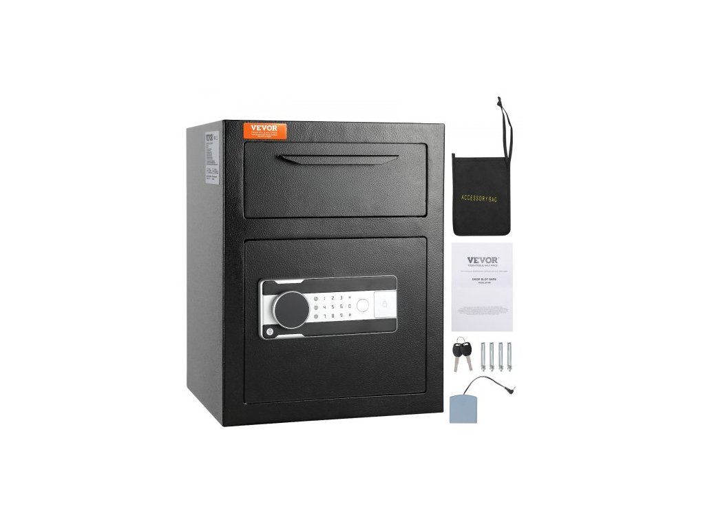 Trezor 1.7 Cub, depozitní trezor s vkládacím otvorem, elektronickým kódovým zámkem a 2 nouzovými klíči, 17,71'' x 13,77'' x 13,77'', obchodní trezor s vkládacím otvorem na hotovost a poštu v domácnosti, hotelu, kancelářiVyrobeno pro dlouhodobé používání