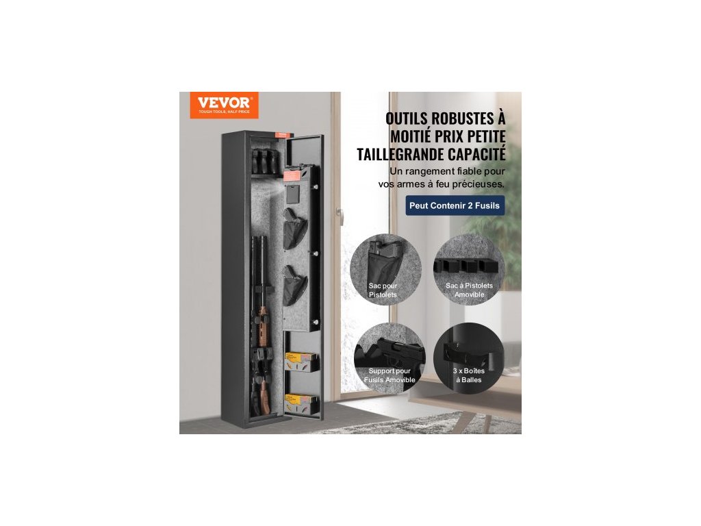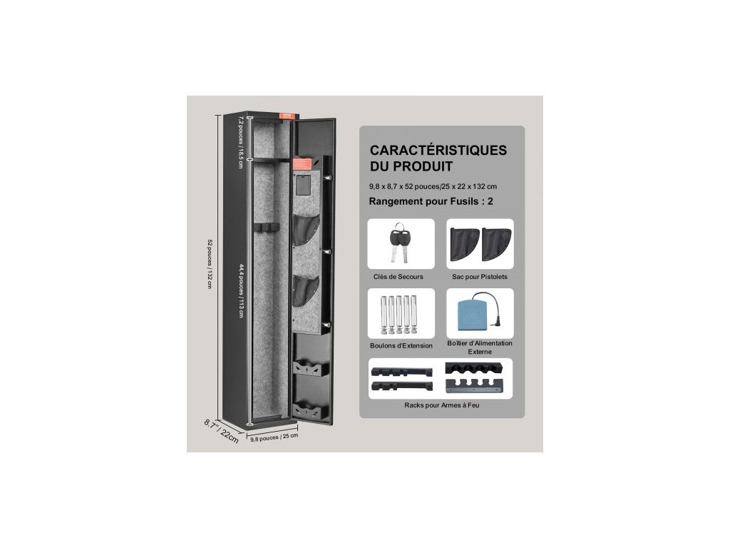 Trezor na zbraně 2 Rifles, trezor na zbraně se zámkem a digitální klávesnicí, skříňka na zbraně s rychlým přístupem a odnímatelnou policí, stojan na pistole, skříňka na pušky pro domácí pušky a pistoleMaximalizace úložného prostoru