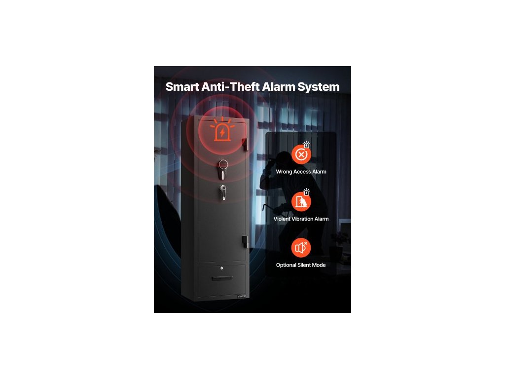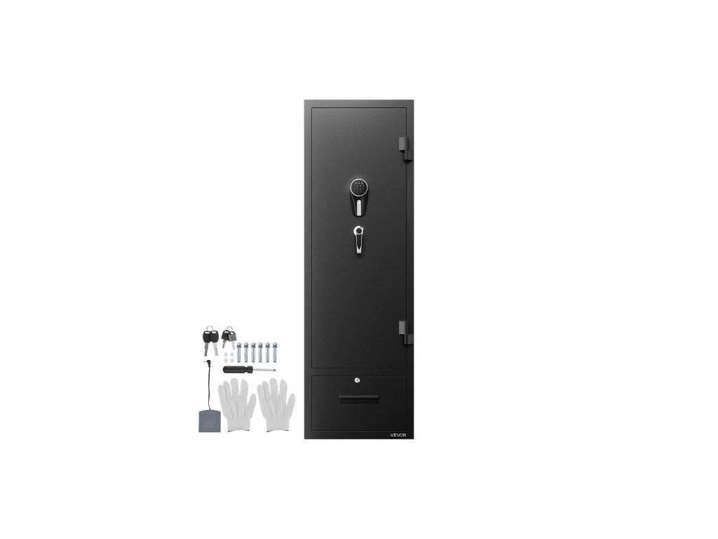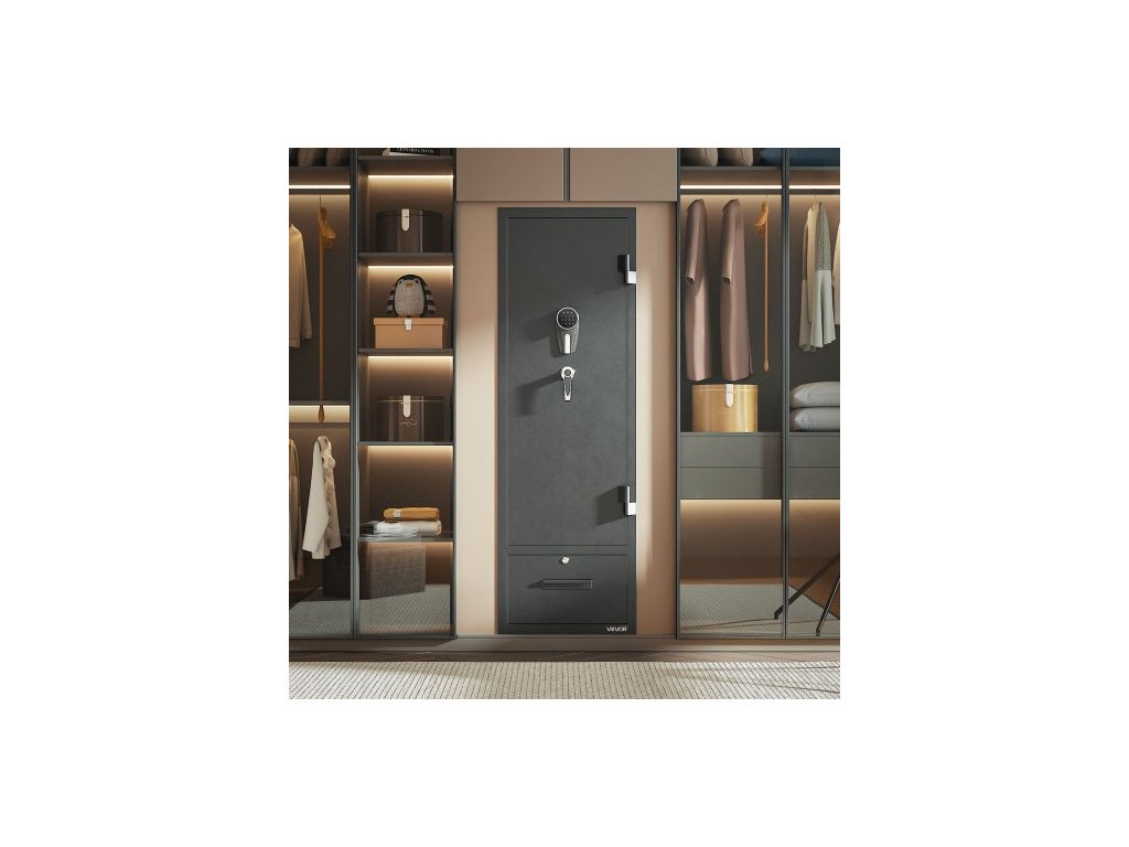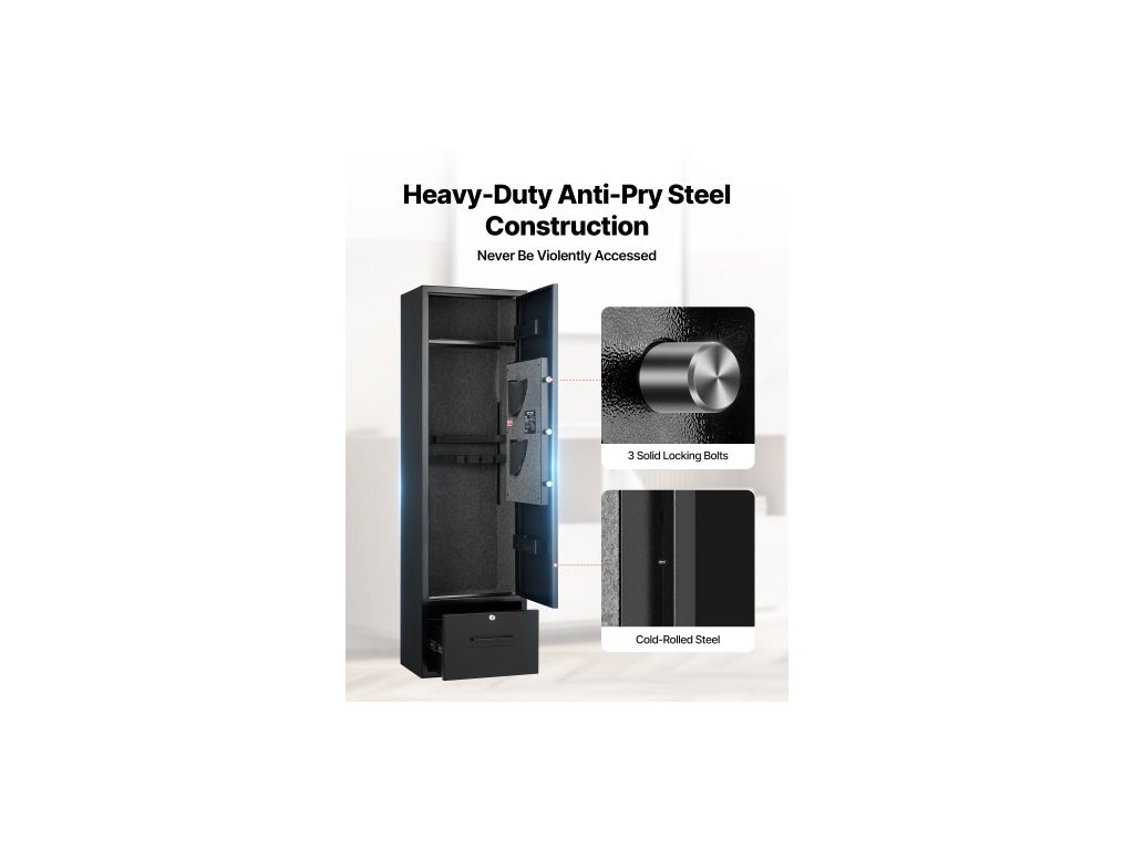 Trezor na zbraně 4, skříň na dlouhé zbraně pro pušky a pistole, rychlý přístup k trezoru na zbraně se 2 sloty na munici, 2 kapsy na pistole a 2 nastavitelnými přihrádkami, velká digitální skříň se zámkem na klíč a hesloVelká kapacita