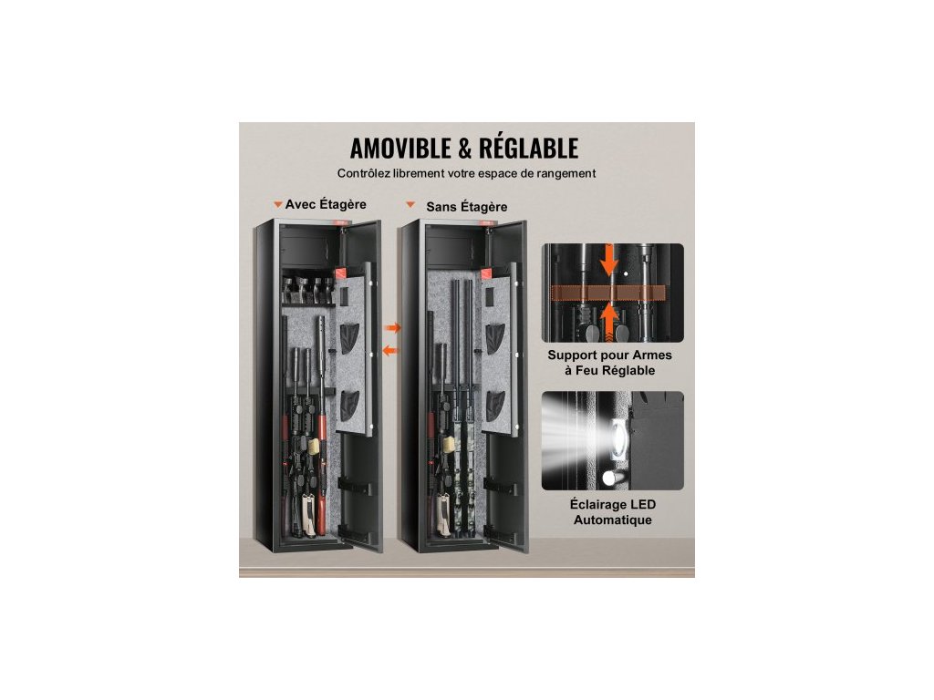 Trezor na zbraně 5 Rifles, trezor na pušky s digitální klávesnicí a zámkem, skříňka na zbraně s vestavěnou úložnou skříňkou, odnímatelná úložná police pro domácí dlouhé zbraně a pistoleMaximalizace úložného prostoru