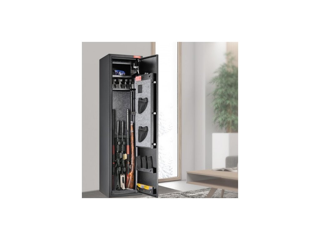 Trezor na zbraně 5 Rifles, trezor na pušky s digitální klávesnicí a zámkem, skříňka na zbraně s vestavěnou úložnou skříňkou, odnímatelná úložná police na domácí dlouhé zbraně a pistole