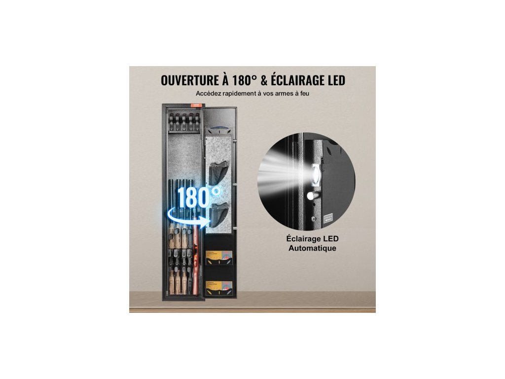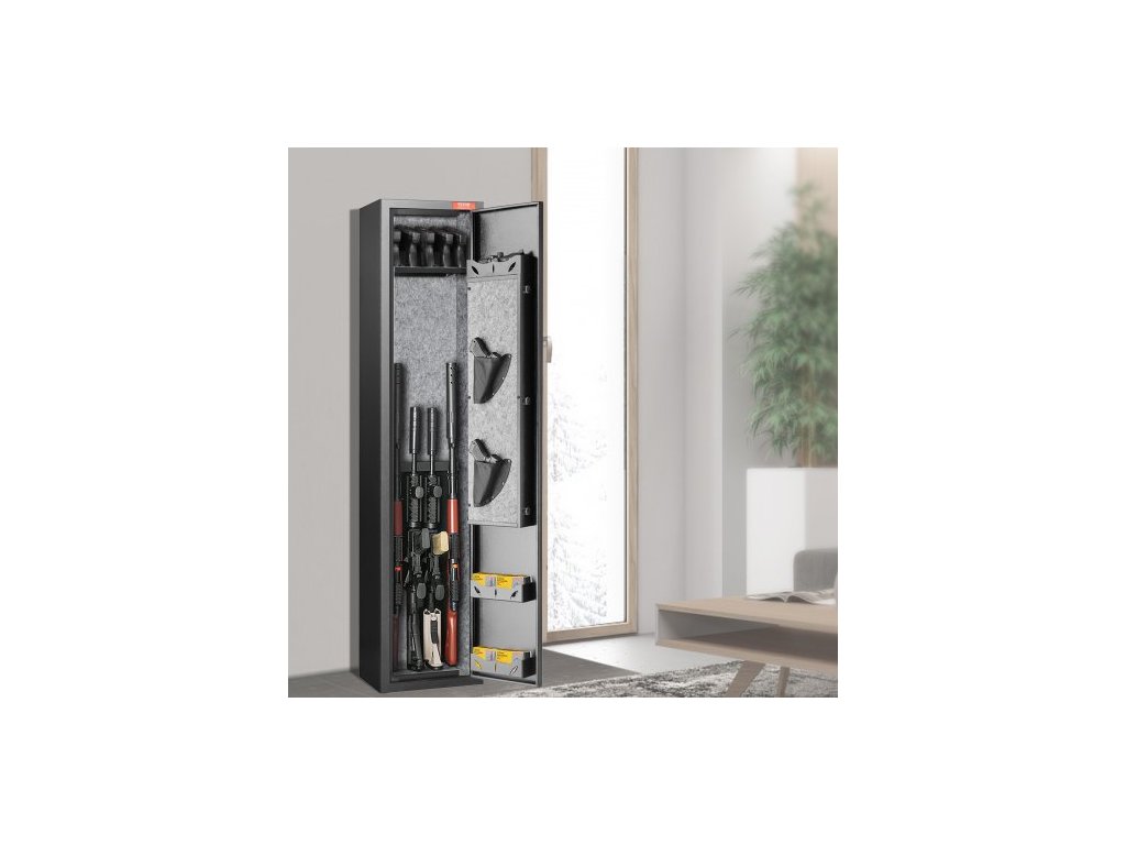 Trezor na zbraně 5 Rifles, trezor na pušky se zámkem na otisk prstu, skříňka na brokovnice s rychlým přístupem a odnímatelnou policí, stojan na pistole, úložná schránka na munici pro domácí dlouhé zbraně a pistoleMaximalizace úložného prostoru