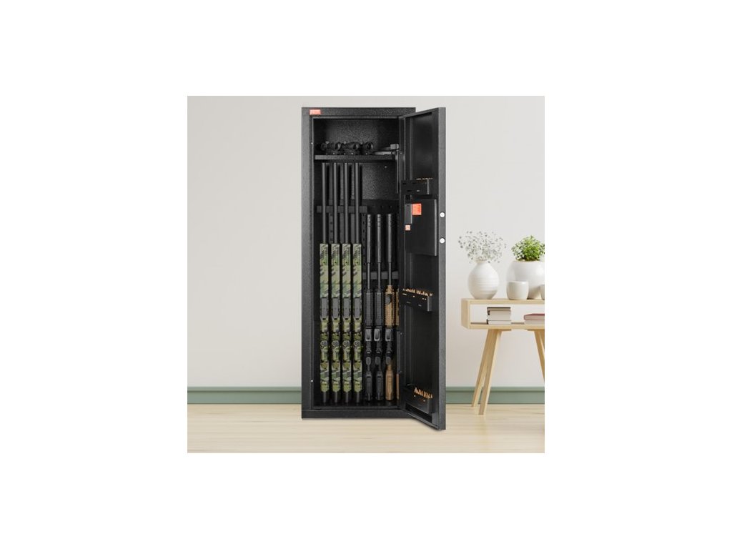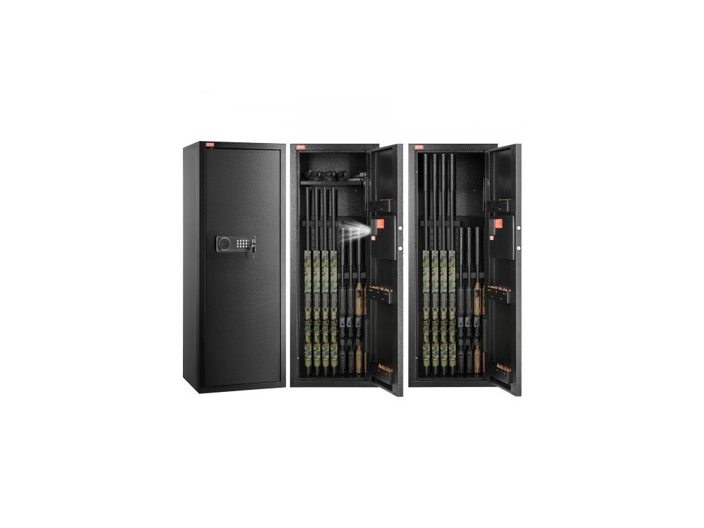 Trezor na zbraně 6-8 Rifles, trezor na pušky se zámkem a digitální klávesnicí, rychlý přístup k vysoké úložné skříňce na zbraně s odnímatelnou policí, skříňka na pušky pro domácí pušky a brokovniceMaximalizace úložného prostoru