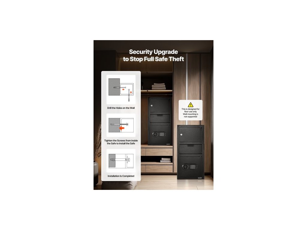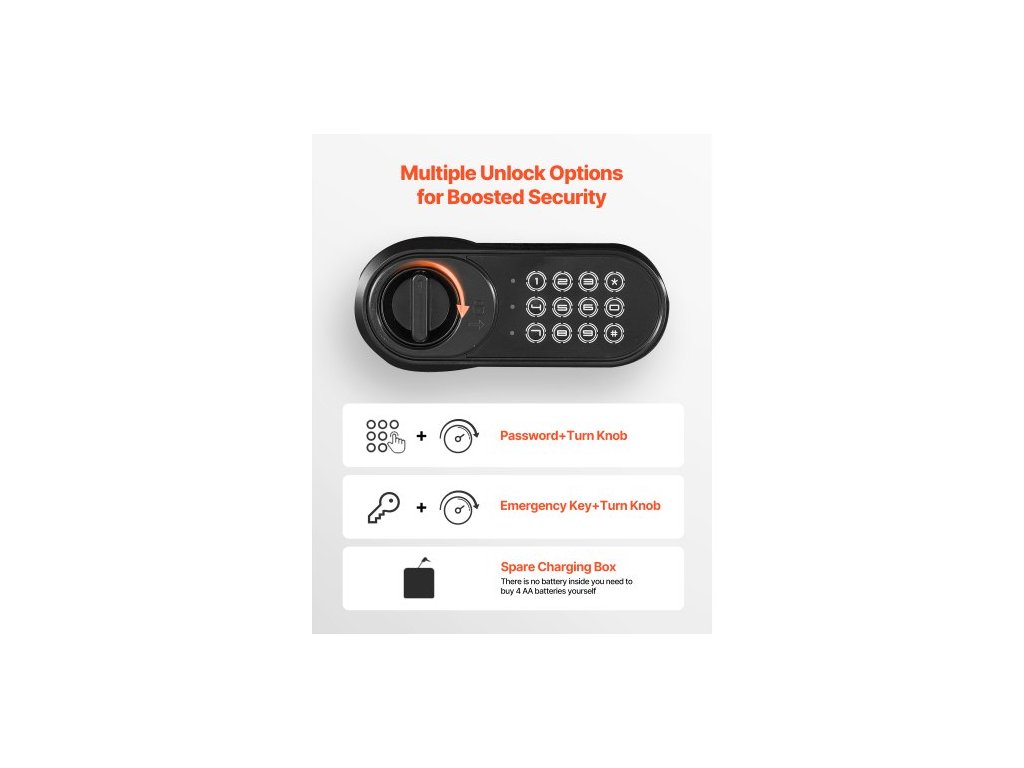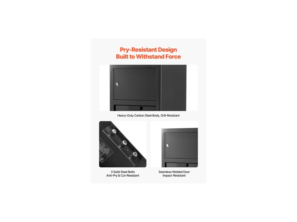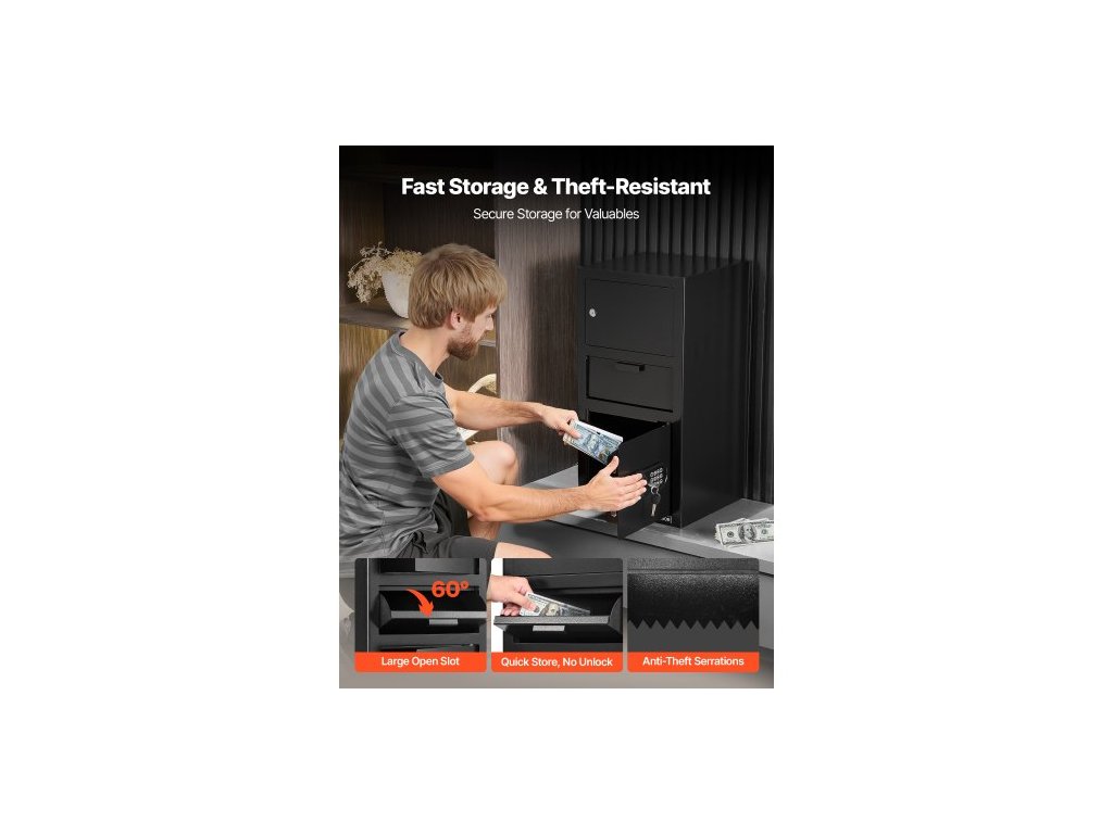 Trezor o objemu 3,6 kubických stop, velkokapacitní trezor s předním skládacím otvorem a digitální klávesnicí, odolný 3patrový box na hotovost s náhradními klíči na hotovost, bankovní doklady, šperky, dokumenty a účty, černýOtevírání dveří 100°