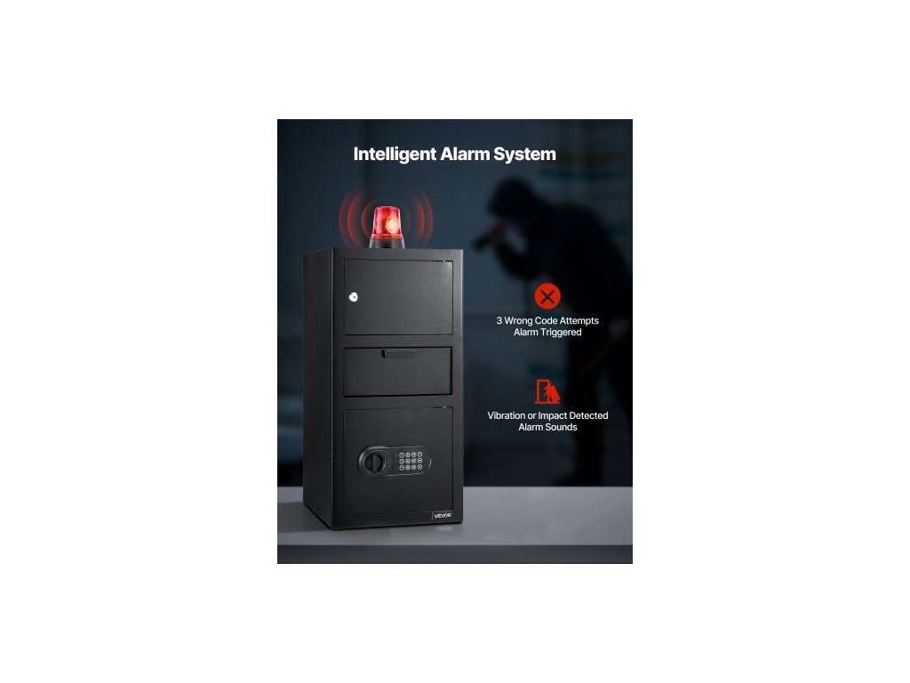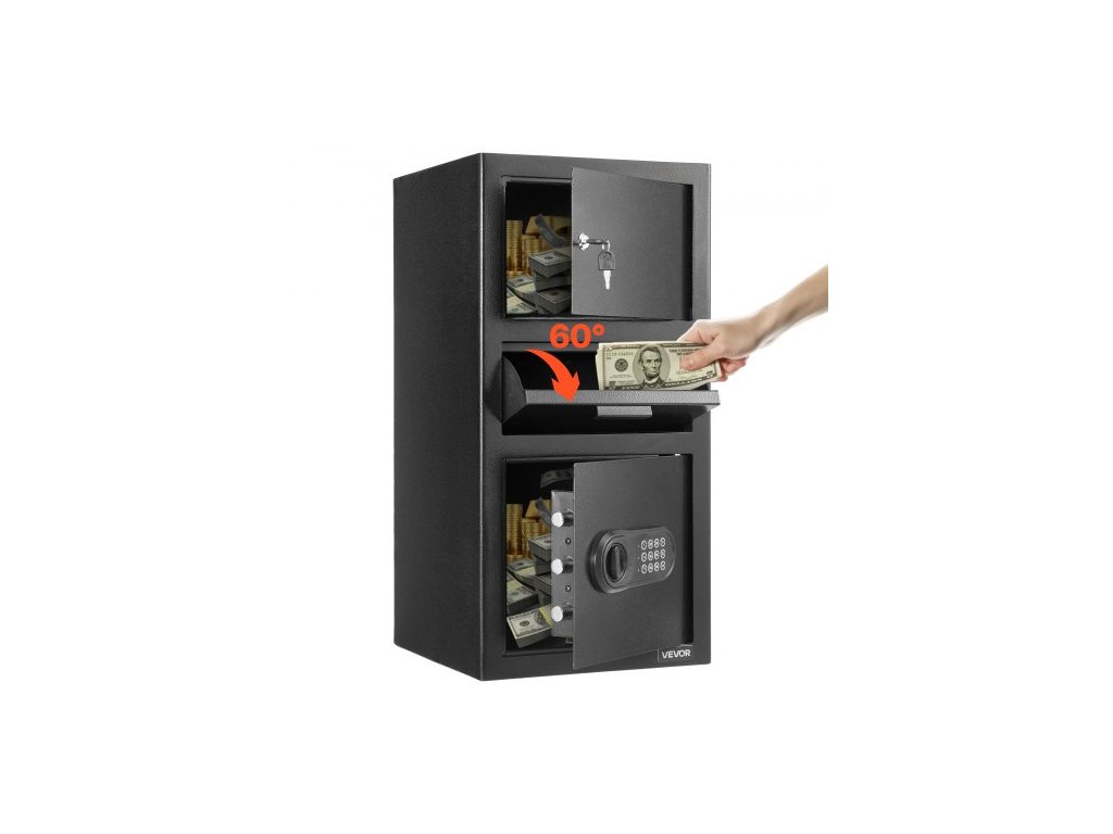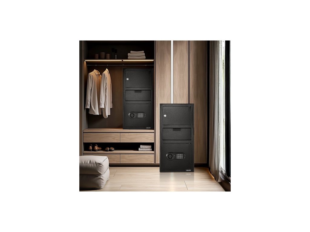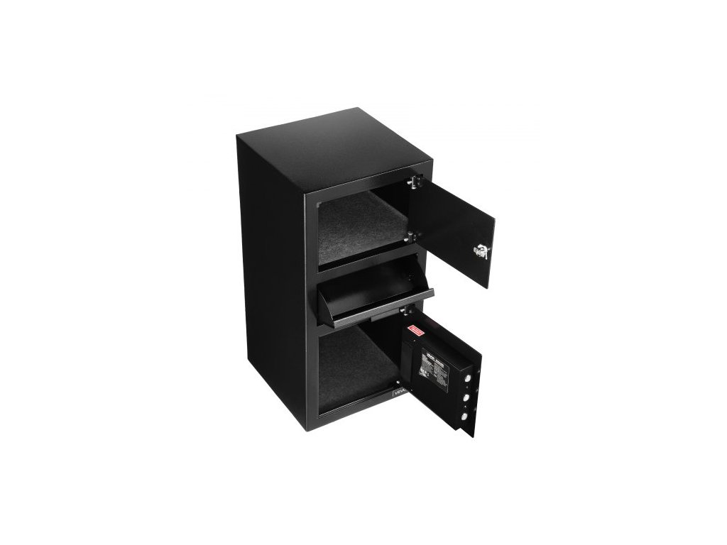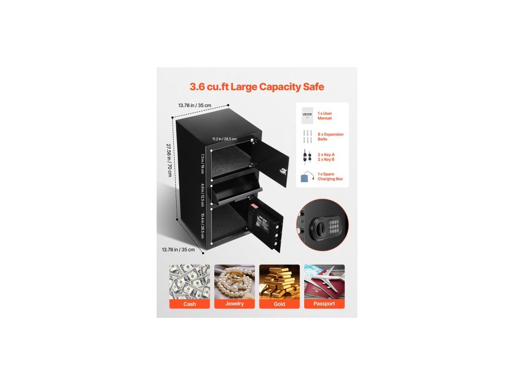 Trezor o objemu 3,6 krychlových stop, velkokapacitní bezpečnostní schránka s předním výklopným otvorem a digitální klávesnicí, odolná 3patrová schránka na hotovost s náhradními klíči na hotovost, bankovní doklady, šperky, dokumenty a účty, černá
