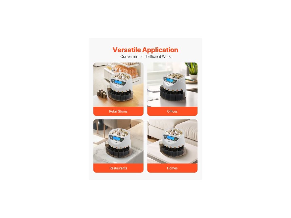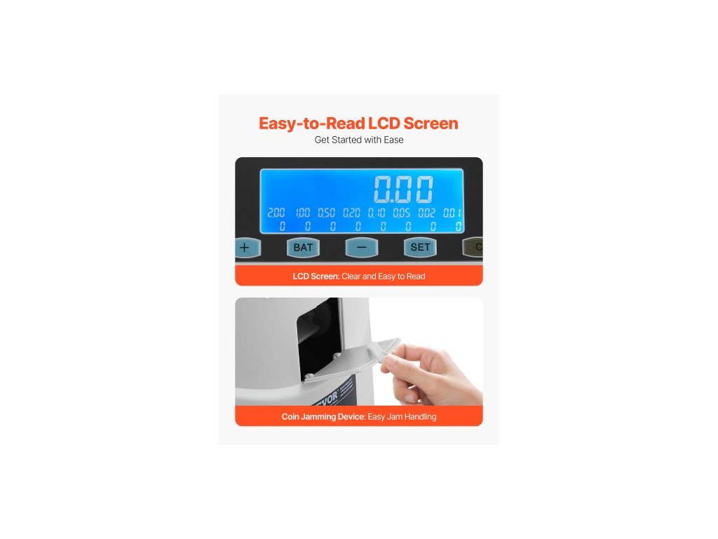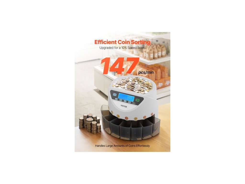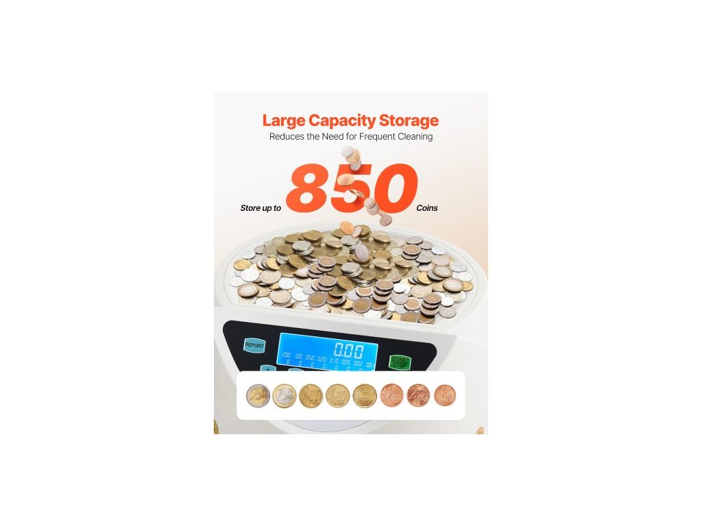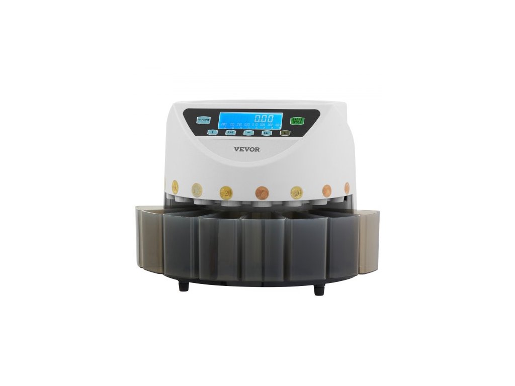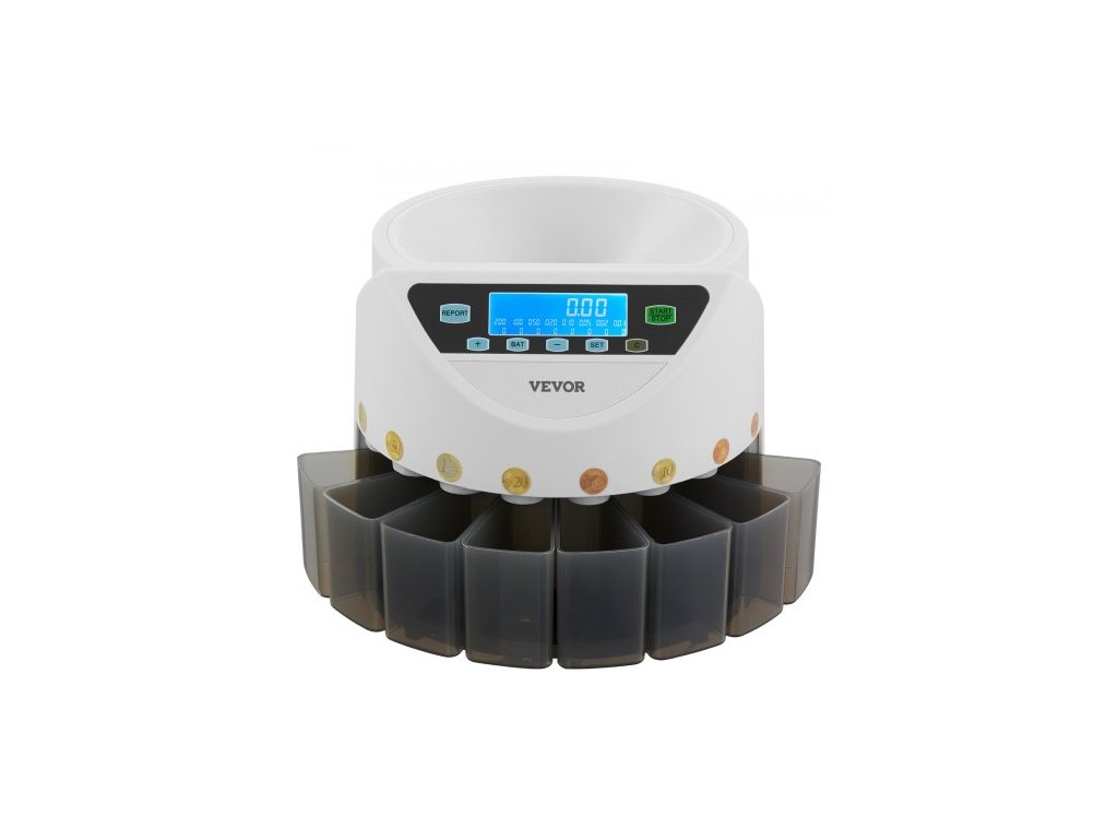 Číslo modelu položky: KSW550-1,Kapacita úložného prostoru na mince: až 850 ks,Hmotnost výrobku: 8,38 lbs / 3,8 kg,Způsob sběru: Sběr v krabicích,Další funkce: Přednastavené dávkové zpracování (0-999 ks), Funkce paměti,Podporuje měny: 8 typů euromincí,Rozměry výrobku: 12,99 x 11,81 x 10,24 palce / 330 x 300 x 260 mm,Rychlost třídění: 147 ks/min, Výkon: 20 W