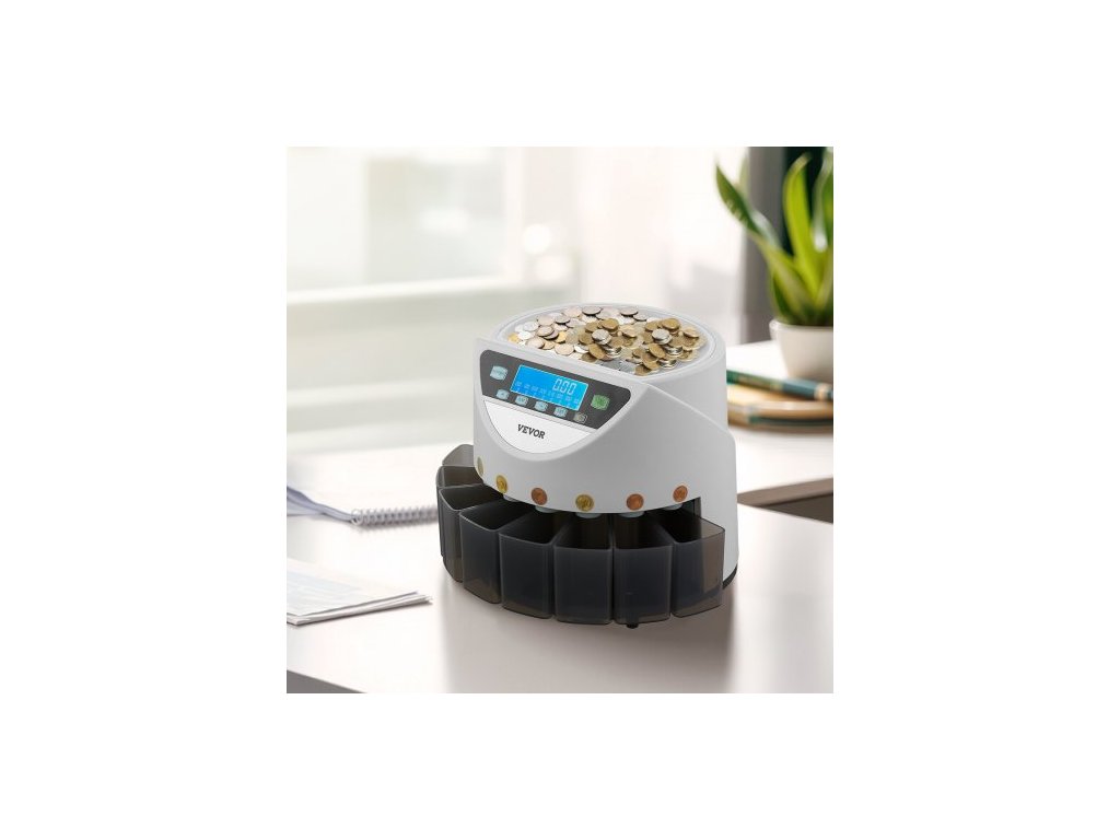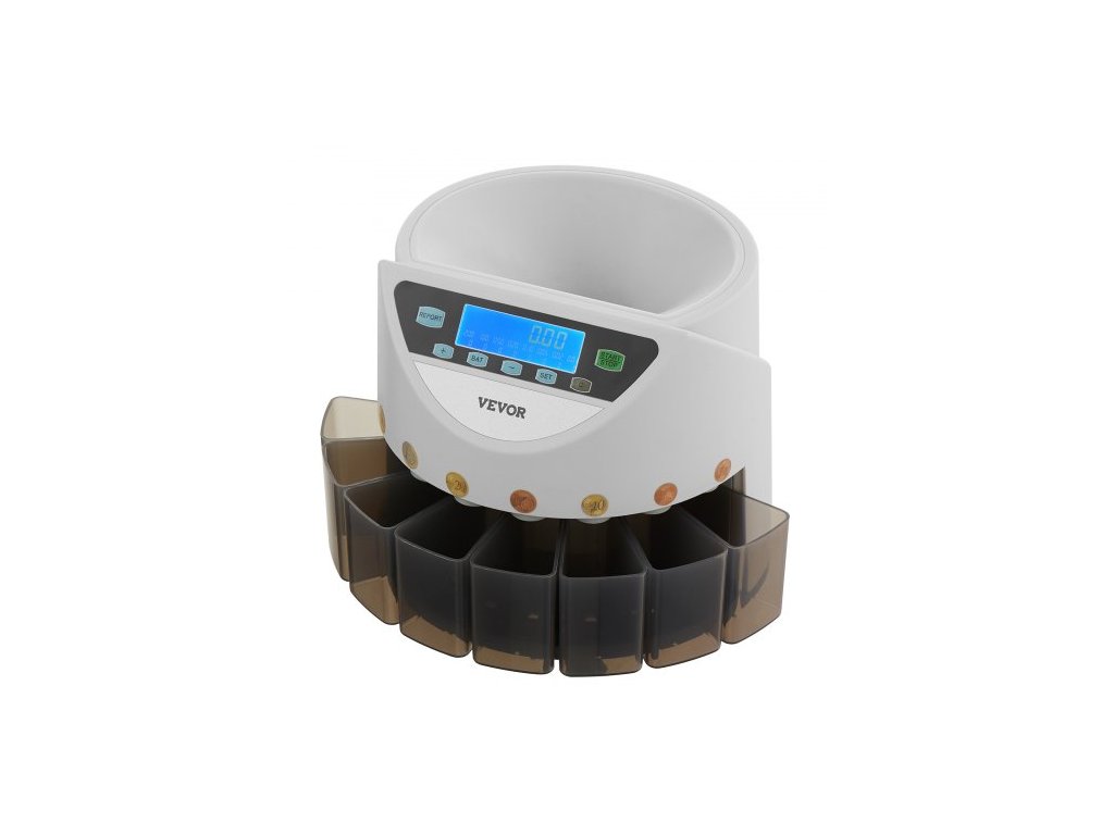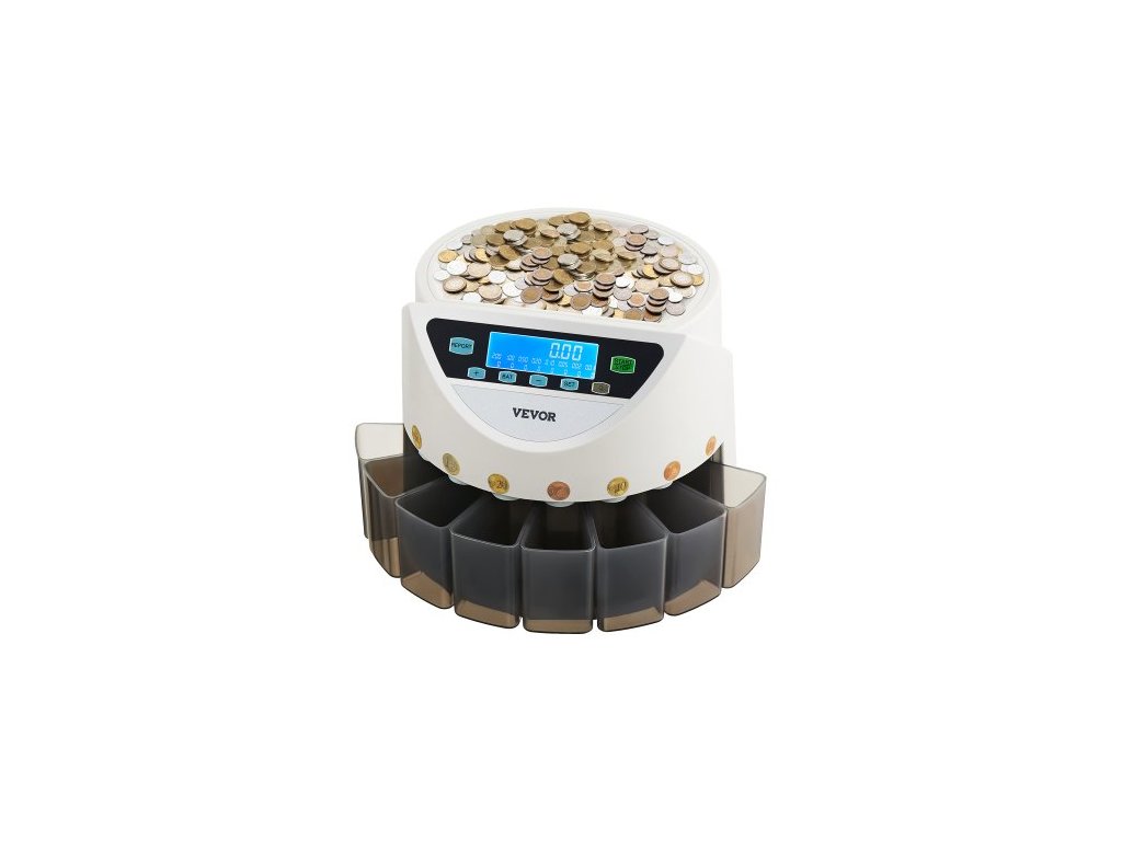 Třídička mincí EURO, počítačka mincí pro 8 druhů euromincí, třídička a balička mincí s kapacitou až 850 mincí, velký LCD displej, úložný prostor na mince, 5 tubusů a krabiček na minceEfektivní třídění