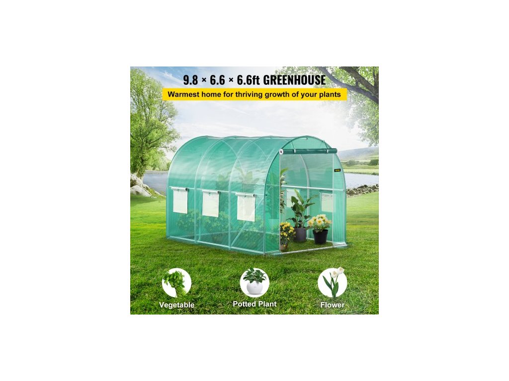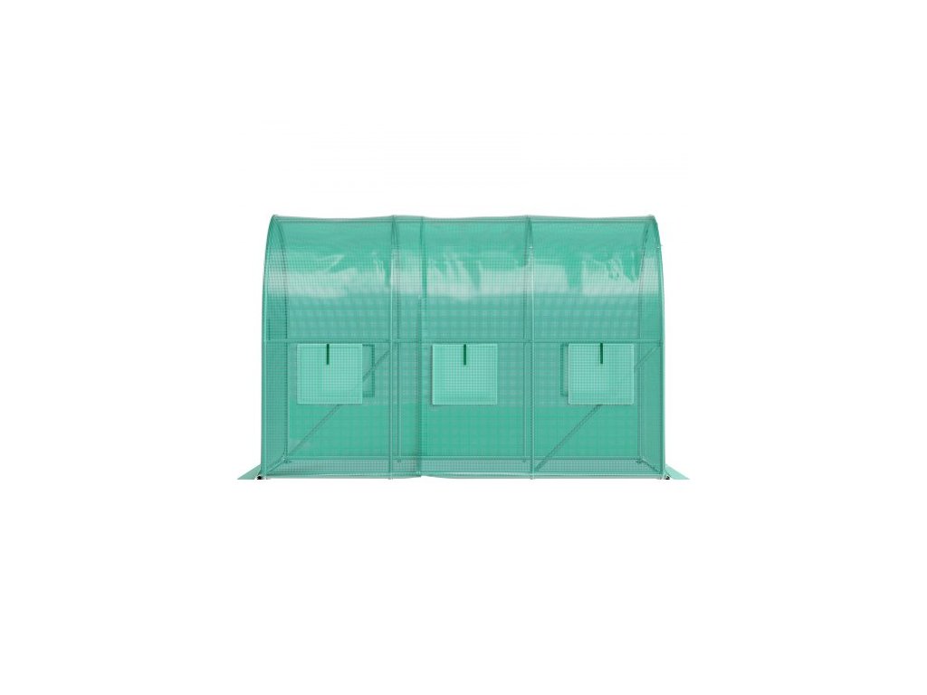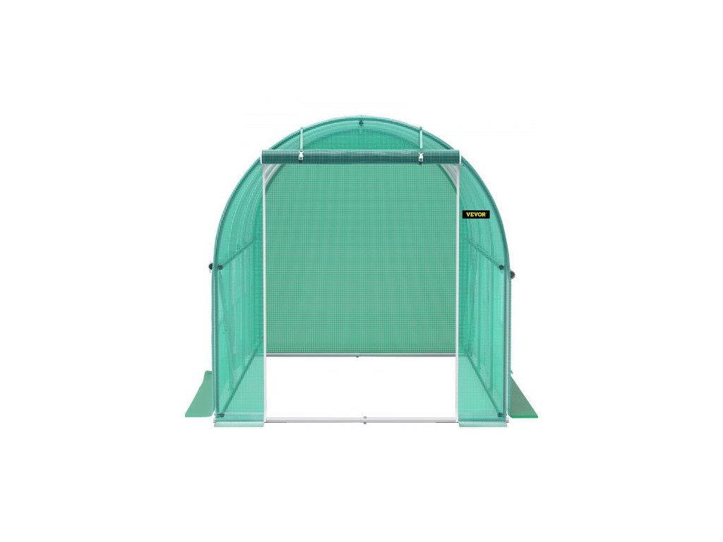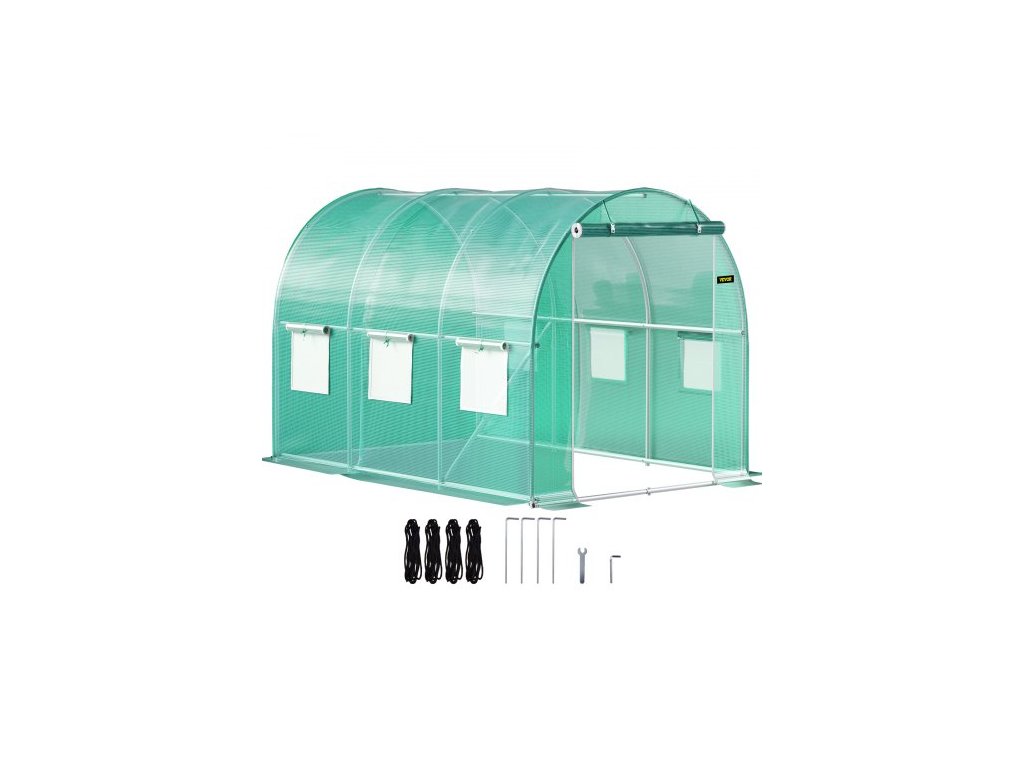 Tunelová skleníková budova , přenosná skleníková budova s pozinkovanými ocelovými obručemi o rozměrech 304,8 x 213,4 x 213,4 cm, 1 horním nosníkem, diagonálními tyčemi, dveřmi na zip a 6 rolovacími okny, zelená