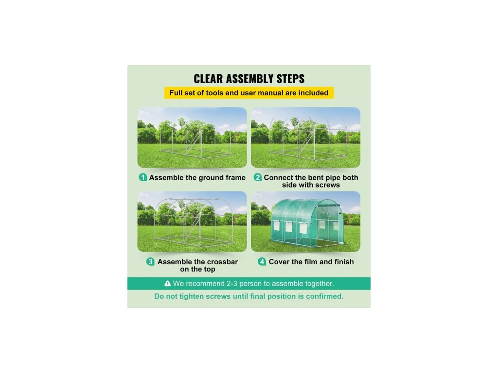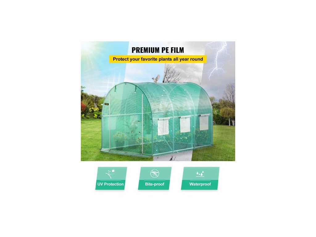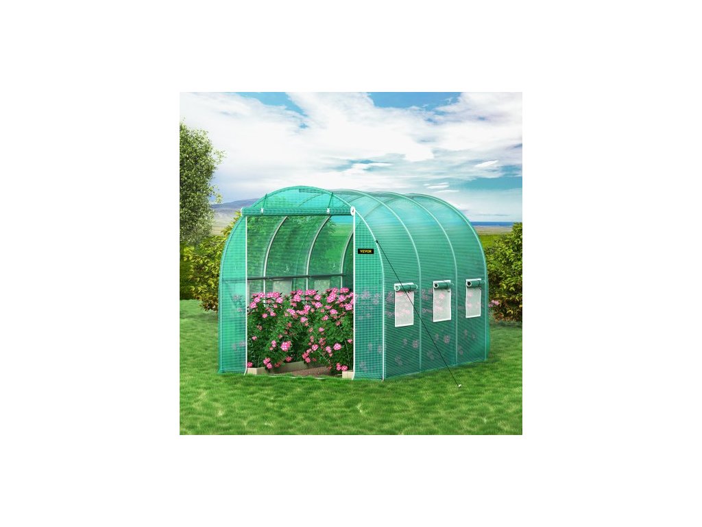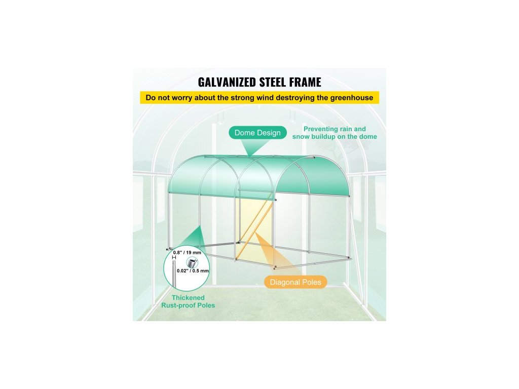 Tunelová skleníková budova , přenosná skleníková budova s pozinkovanými ocelovými obručemi o rozměrech 304,8 x 213,4 x 213,4 cm, 1 horním nosníkem, diagonálními tyčemi, dveřmi na zip a 6 rolovacími okny, zelená