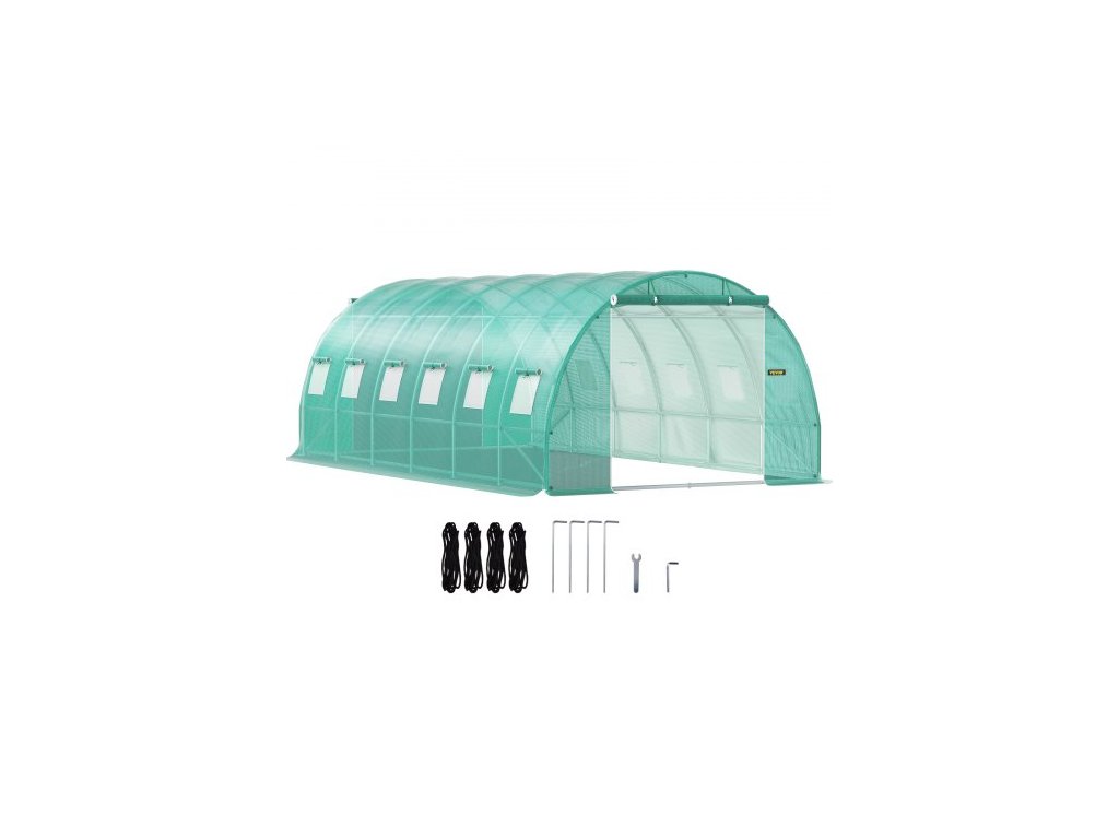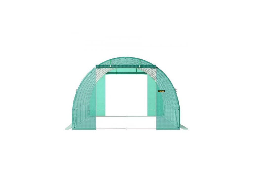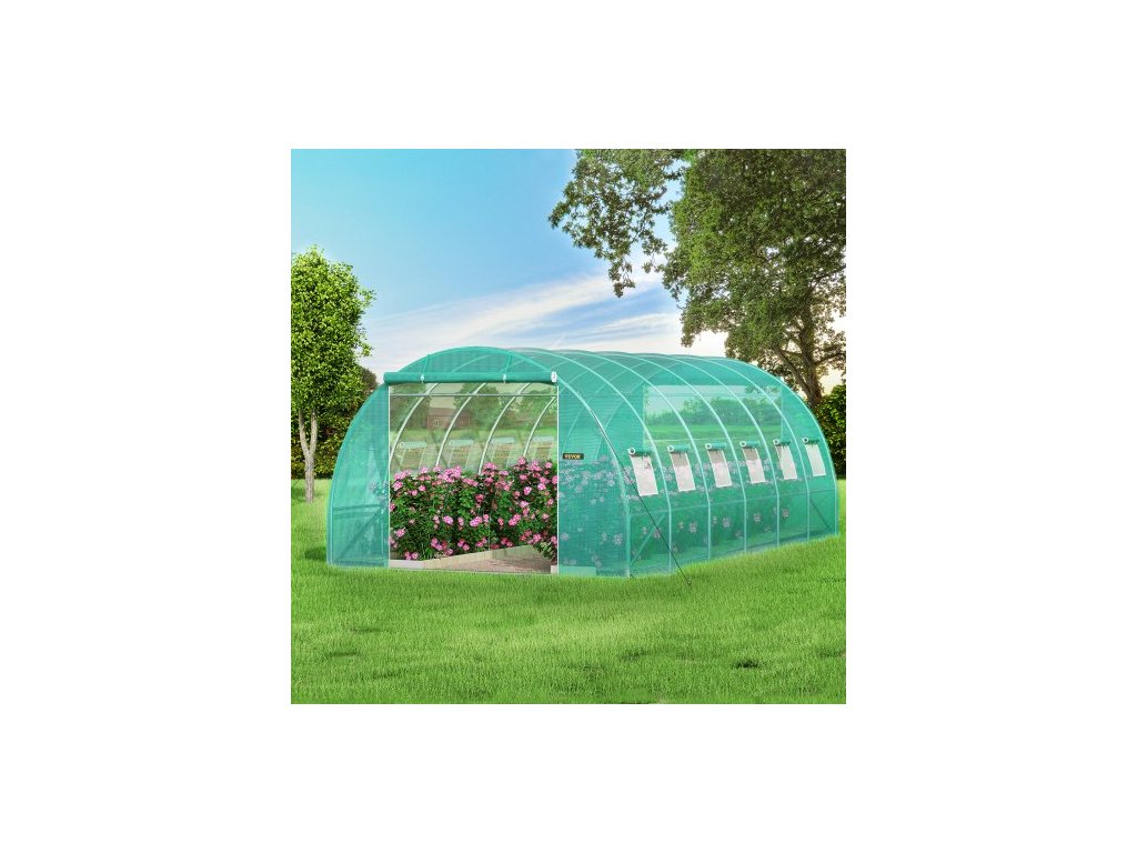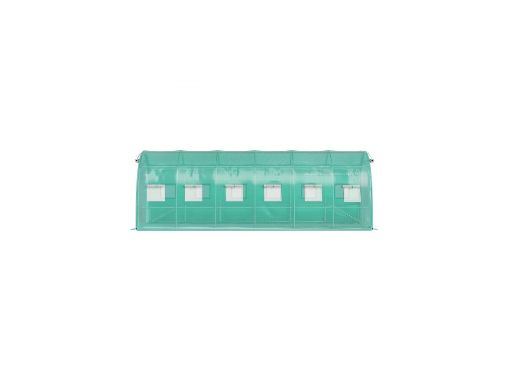 Tunelová skleníková hala , přenosná skleníková hala s pozinkovanými ocelovými obručemi, 609,6 x 304,8 x 213,4 cm, 3 horními nosníky, 4 diagonálními tyčemi, 2 dveřmi na zip a 12 rolovacími okny, zelená