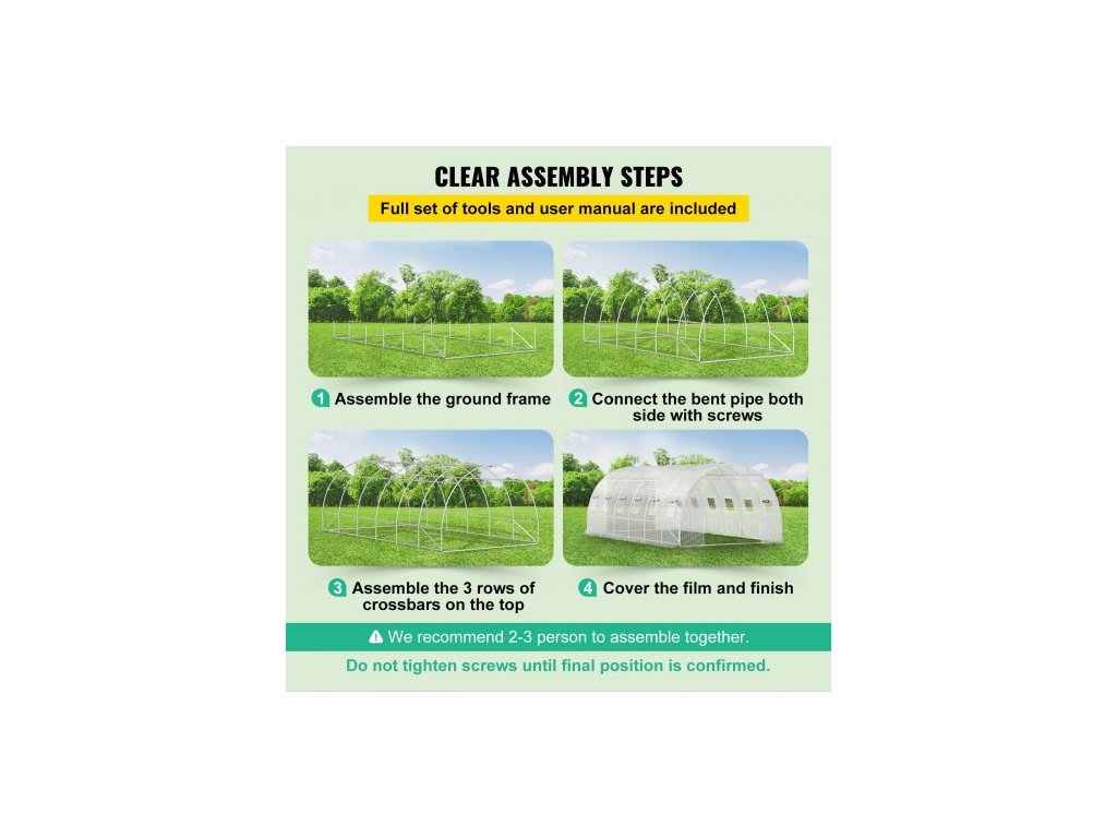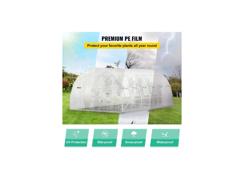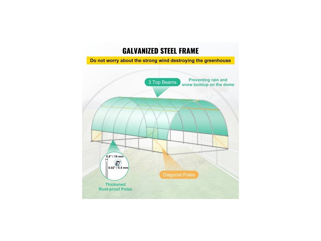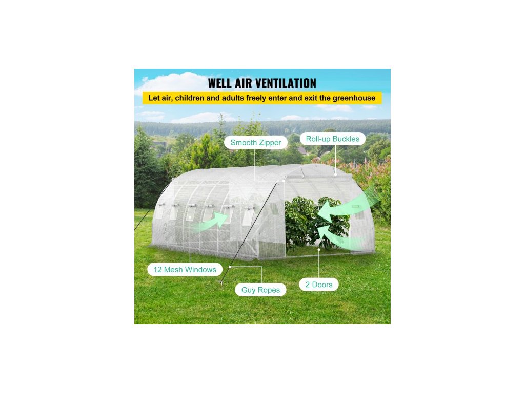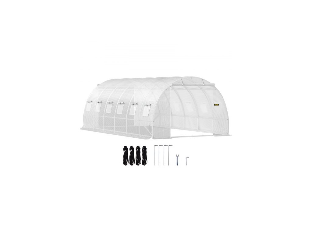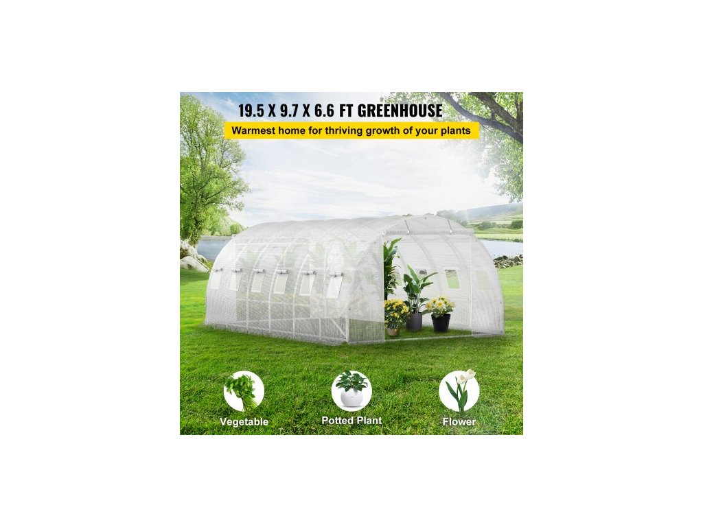 Průchozí tunelový skleník, přenosný skleník na rostliny 609,6 x 304,8 x 213,4 cm s pozinkovanými ocelovými obručemi, 3 horními nosníky, 4 diagonálními tyčemi, 2 dveřmi na zip a 12 rolovacími okny, bílýVelký prostor