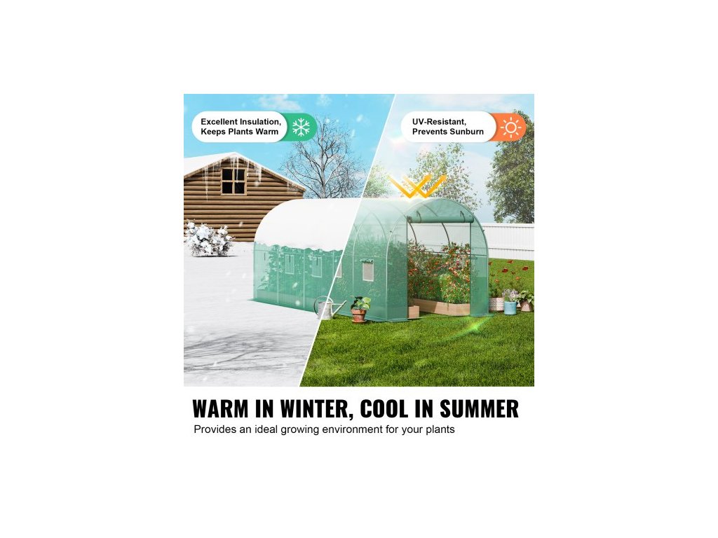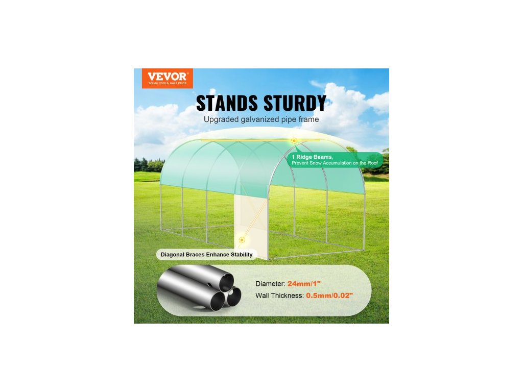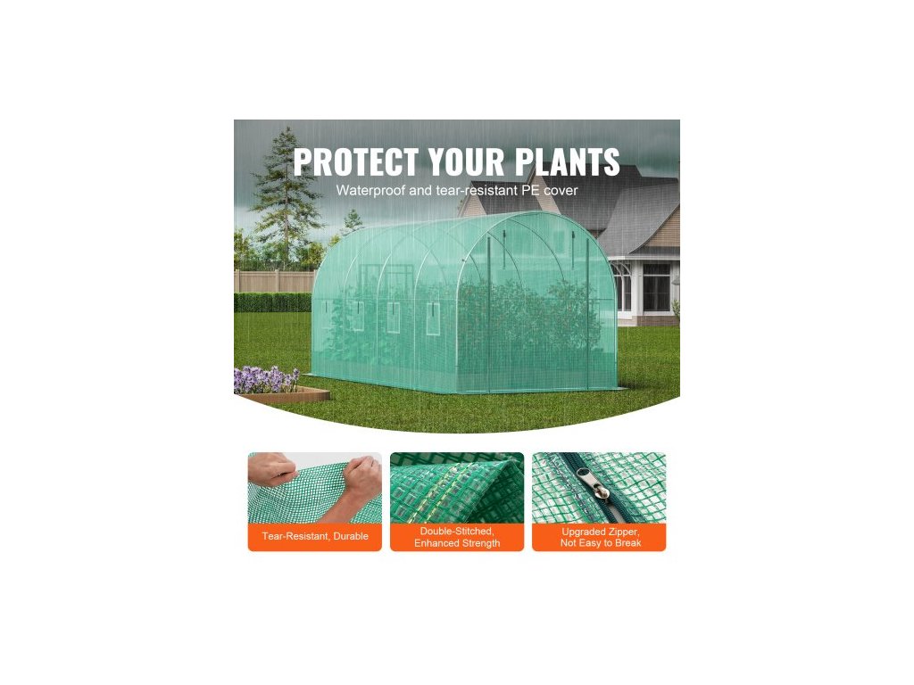 Průchozí tunelový skleník, 14,6x6,4x6,3 ft, kruhový skleníkový tunel, skleník s pozinkovaným ocelovým rámem, zeleným PE krytem, rolovacími dveřmi na zip a 8 okny pro venkovní použitíVelký skleník