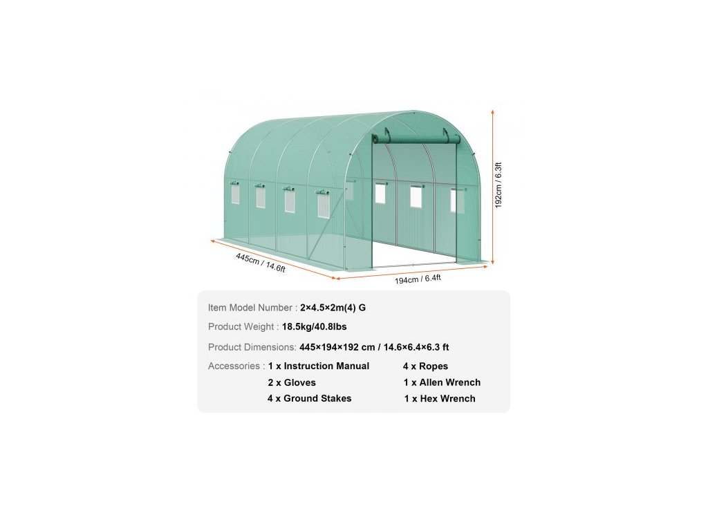 Číslo modelu položky: 2×4,5×2m (4) G,Hmotnost výrobku: 18,5 kg/40,8 lbs,Rozměry výrobku: 445x194x192 cm/14,60x6,36x6,30 ft