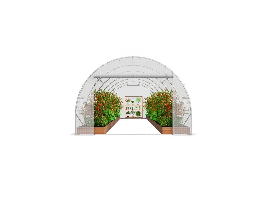Tunelový skleník , 19,4x9,7x6,5 stop, kruhový skleník, skleníkový tunel, rostlinný skleník s pozinkovaným ocelovým rámem, bílým PE krytem, rolovacími dveřmi na zip a 12 okny pro venkovní použití