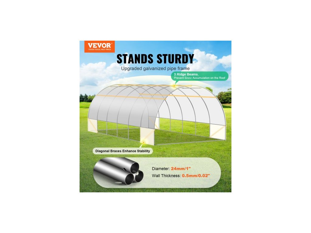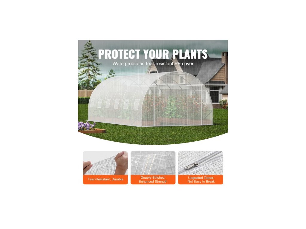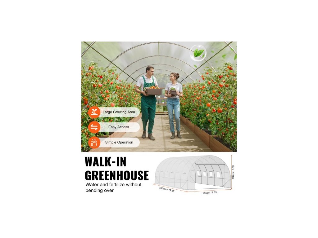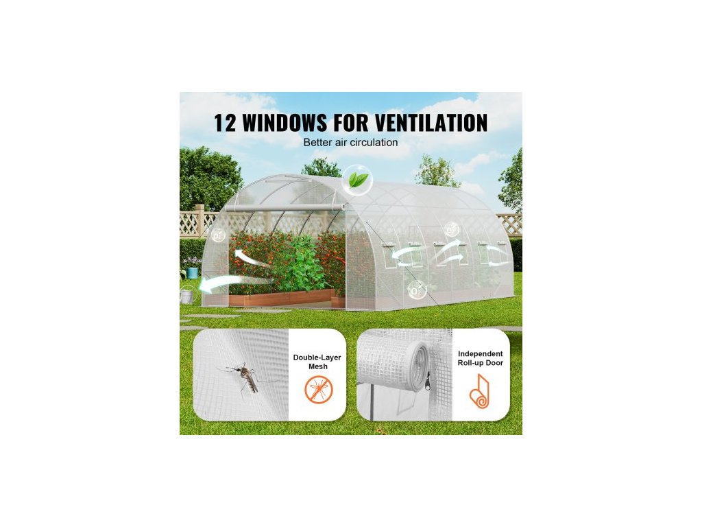 Průchozí tunelový skleník, 19,4x9,7x6,5 stop, kruhový skleníkový tunel, skleník s pozinkovaným ocelovým rámem, bílý PE kryt, rolovací dveře na zip a 12 okny pro venkovní použitíVelký skleník