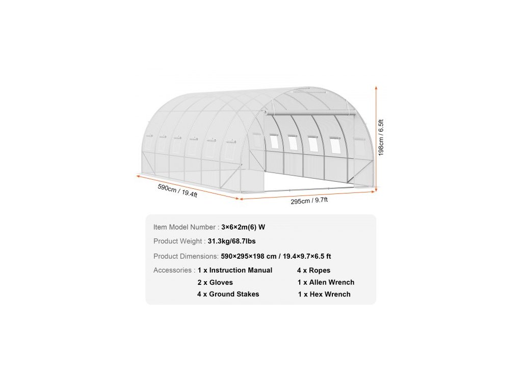Číslo modelu položky: 3×6×2m(6)Š,Hmotnost výrobku: 31,3 kg/68,7 lbs,Rozměry výrobku: 590x295x198cm/19,36x9,68x6,50 stop