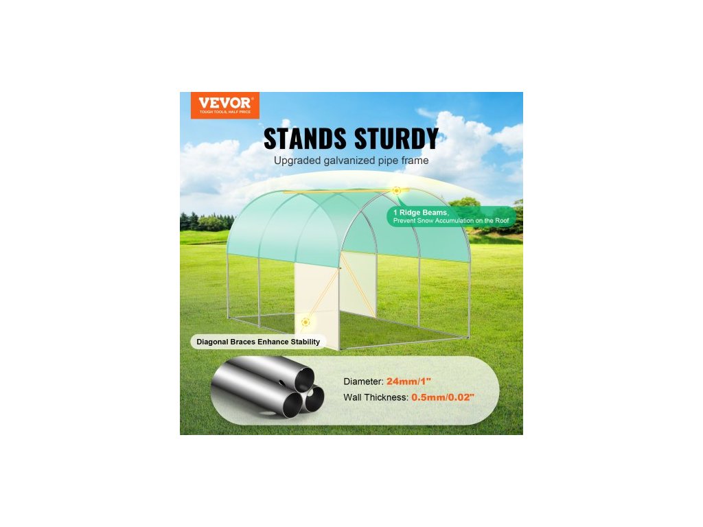 Průchozí tunelový skleník, 11,3x6,4x6,3 stop, kruhový skleníkový tunel, skleník na rostliny s pozinkovaným ocelovým rámem, zeleným PE krytem, rolovacími dveřmi na zip a 6 okny pro venkovní použitíVelký skleník