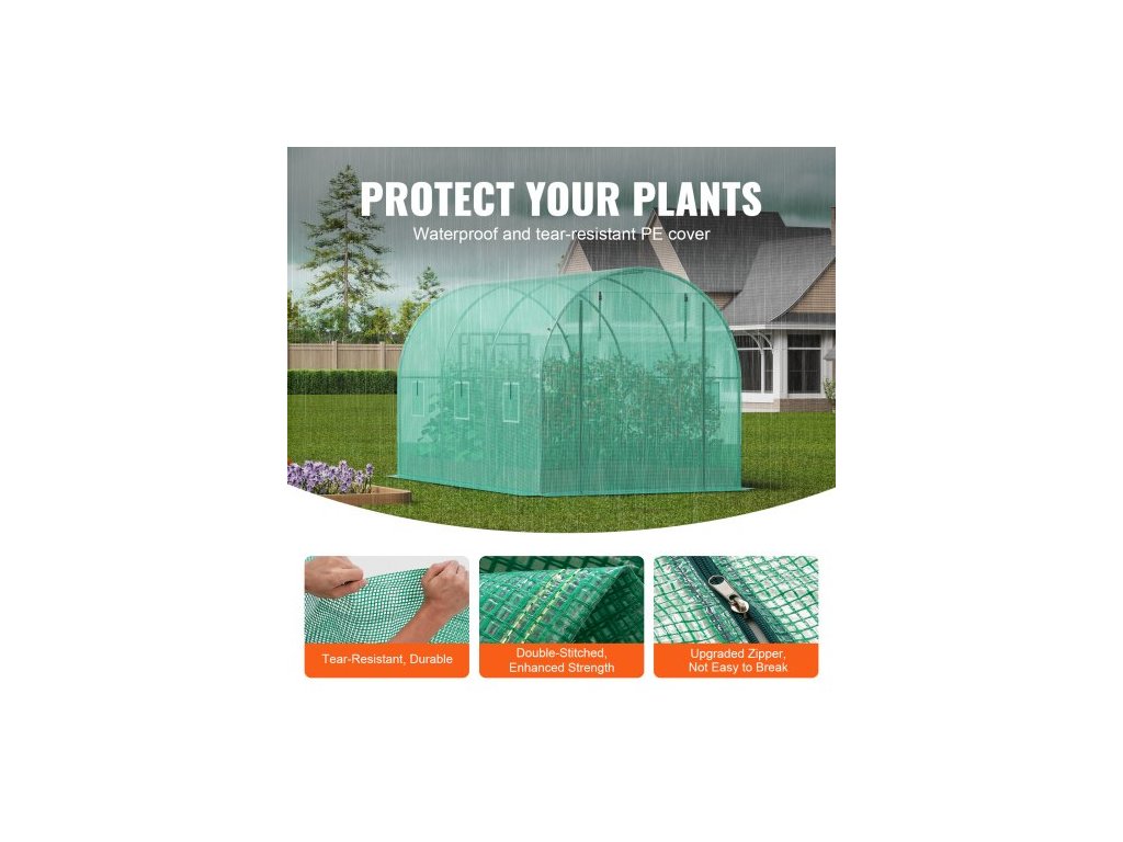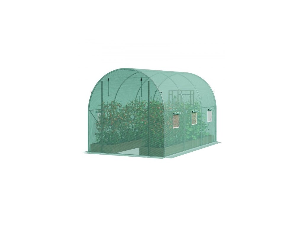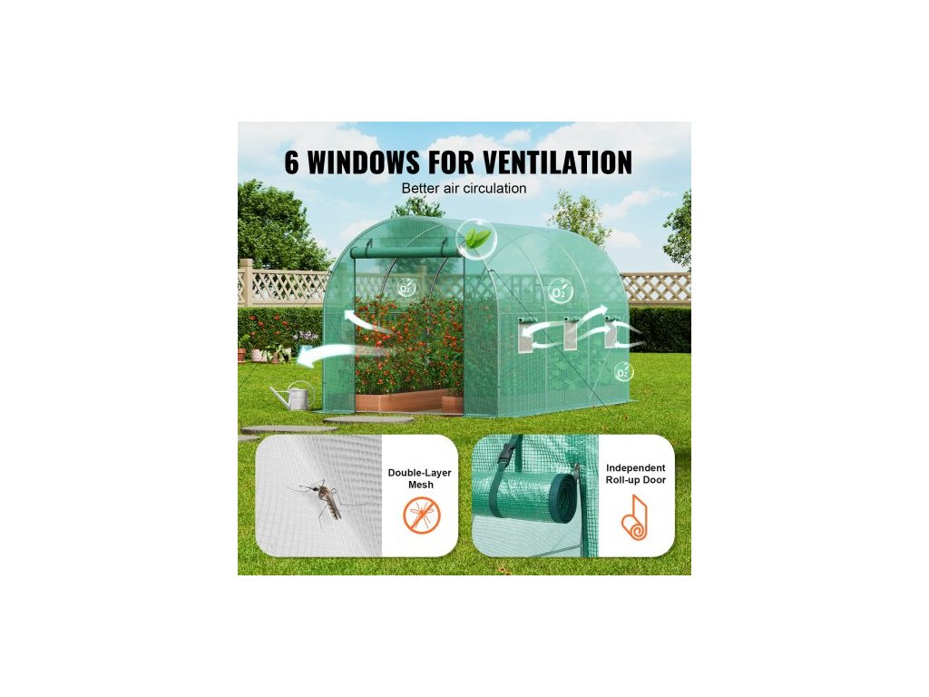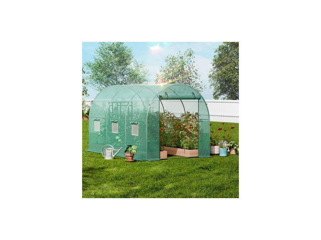 Tunelový skleník , 3,3 x 1,9 x 1,9 m, kruhový skleník, skleníkový tunel, rostlinný skleník s pozinkovaným ocelovým rámem, zeleným PE krytem, rolovacími dveřmi na zip a 6 okny pro venkovní použití